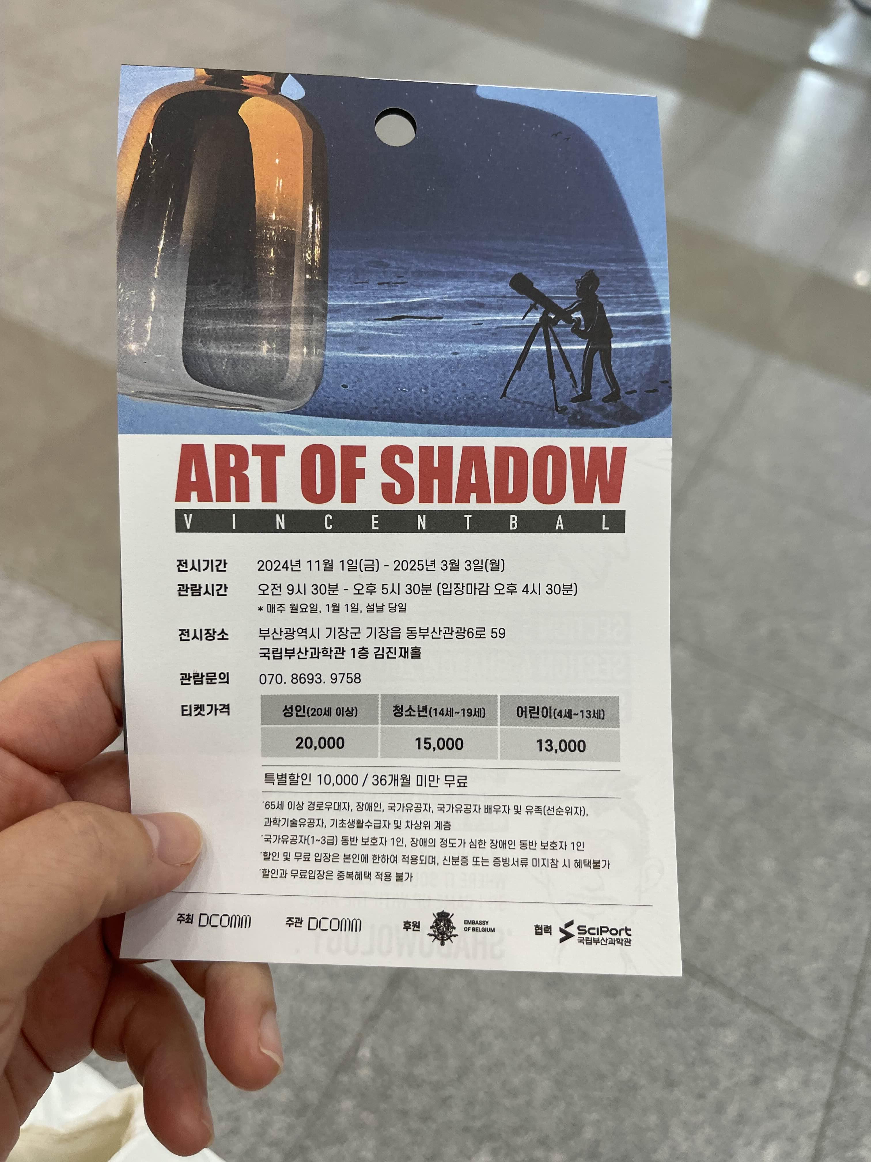 빈센트 발 ART OF SHADOW : 국립부산과학관 특별전 50% 할인 꼭 받기!! 왜? 입장료 2만원입니다. 이거 이번 특별전 왜이렇게 비싸요!!! 늘 만원 이내였는데 ㅠㅠ