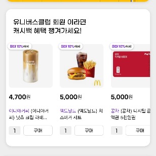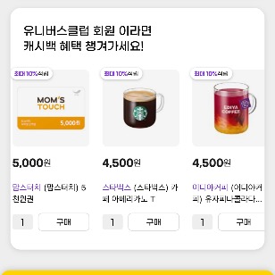 6 맘스터치 스타벅스 이디야커피 텐퍼센트커피 메가커피 더벤티 맥도날드 투썸플레이스 있어요. 골라서 메뉴변경해서 먹음되니까 ^^ 괜찮죠?