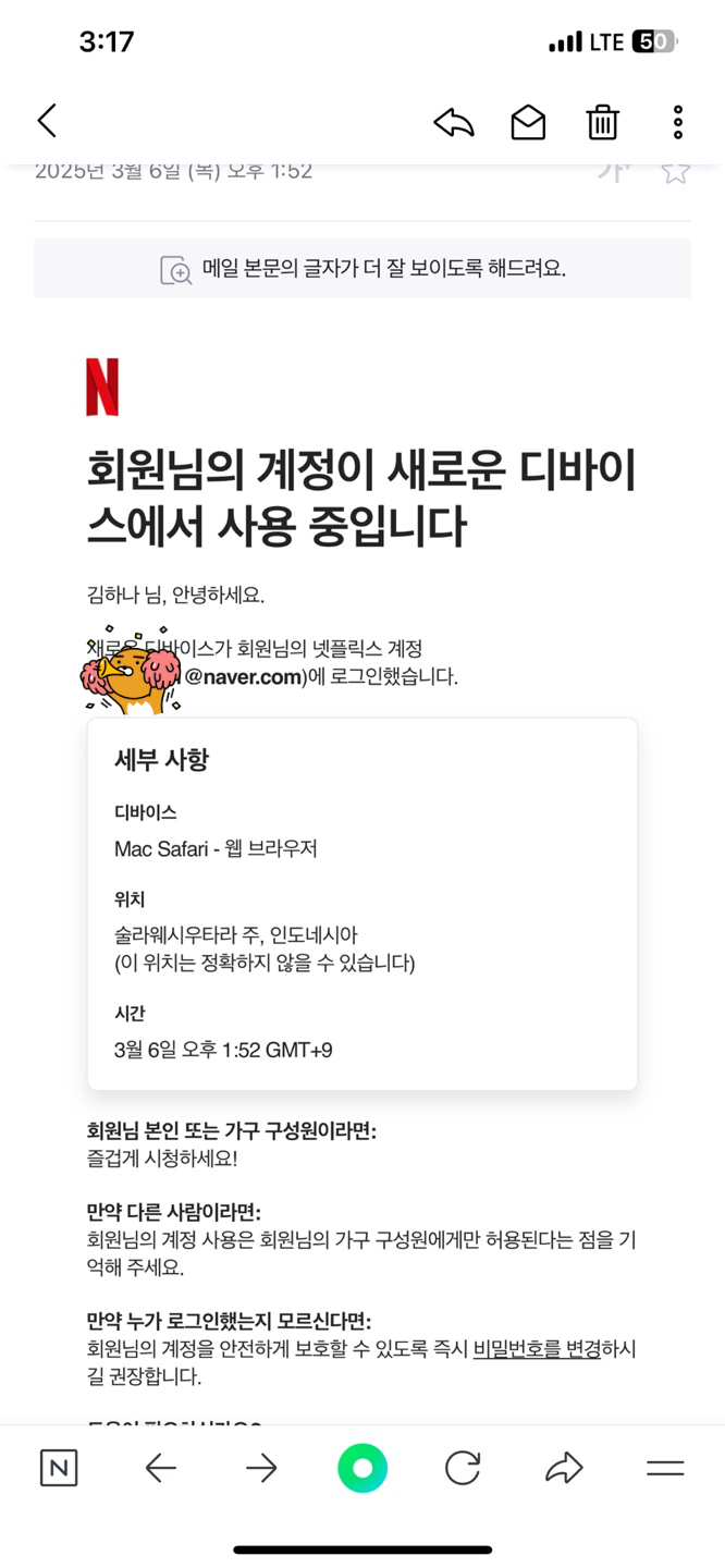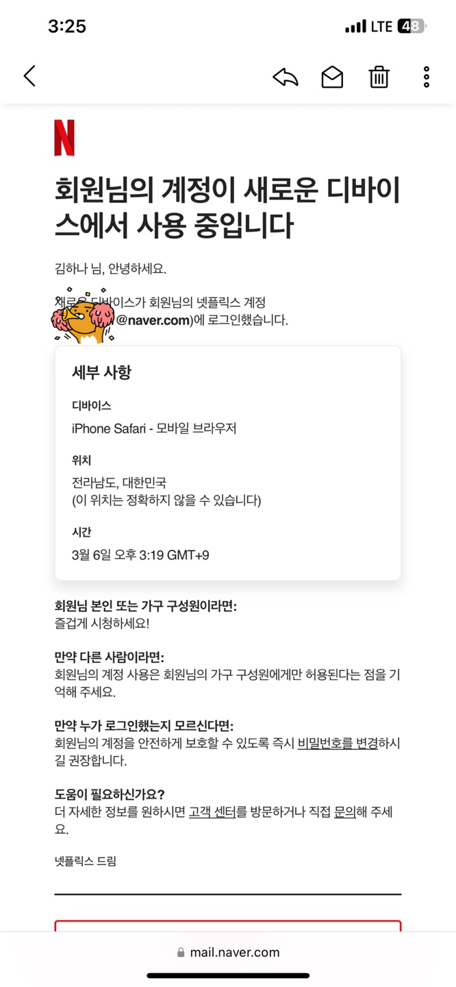 넷플릭스 에서 메일 왔지만 주소 확인할 생각을 못함