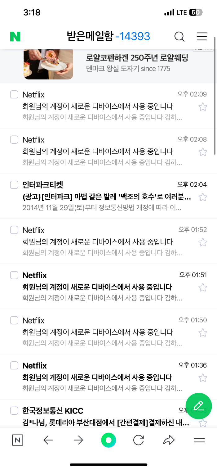 이메일에 들어갔는데 무슨 넷플릭스에서 이렇게 메일이 많이 온건지? 좀 의아했다. 그런데 메일을 하나씩 열어볼때마다 섬뜩