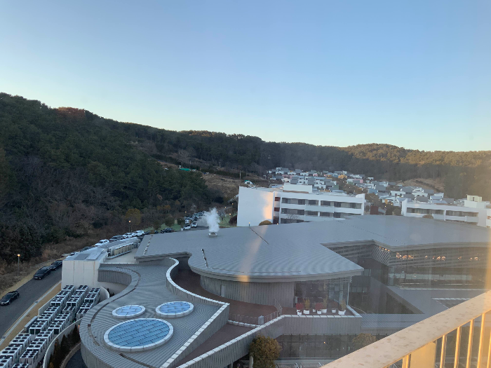 룸에서 바라보니 저기 위에 보이는 작은 집들은 매너하우스(빌라쥬드 아난티의 독채 룸들)