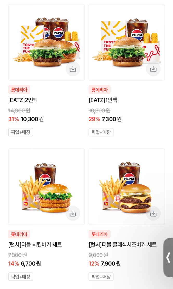 햄버거 세트 두개를 만원에