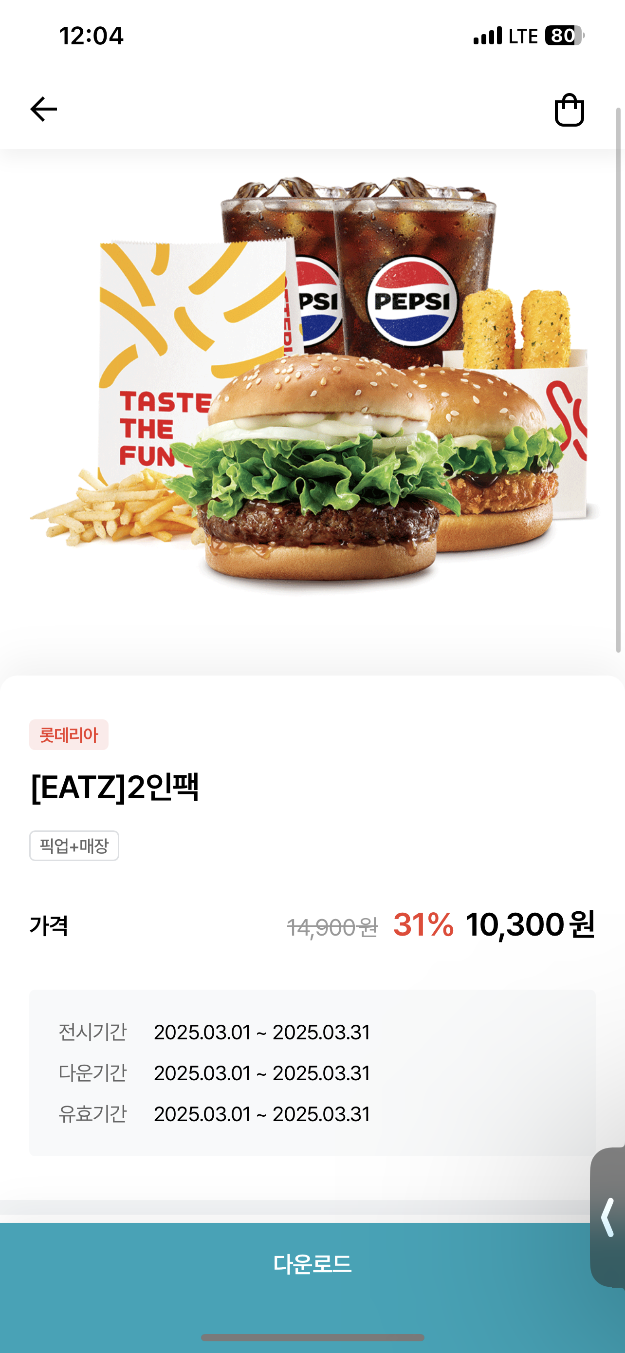 ㆍ구성 : 리아 불고기+치킨버거+양념감자+치즈스틱+콜라(R)2개
