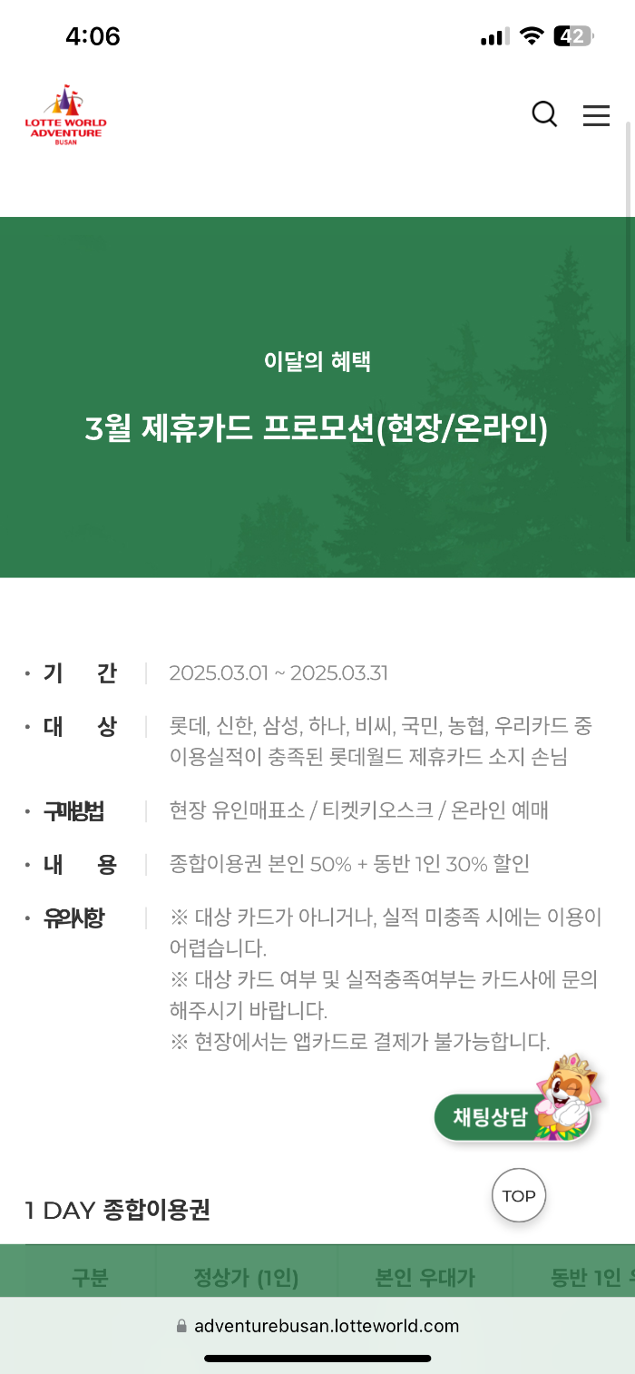 4 부산 롯데월드 50%할인 신용카드 소개