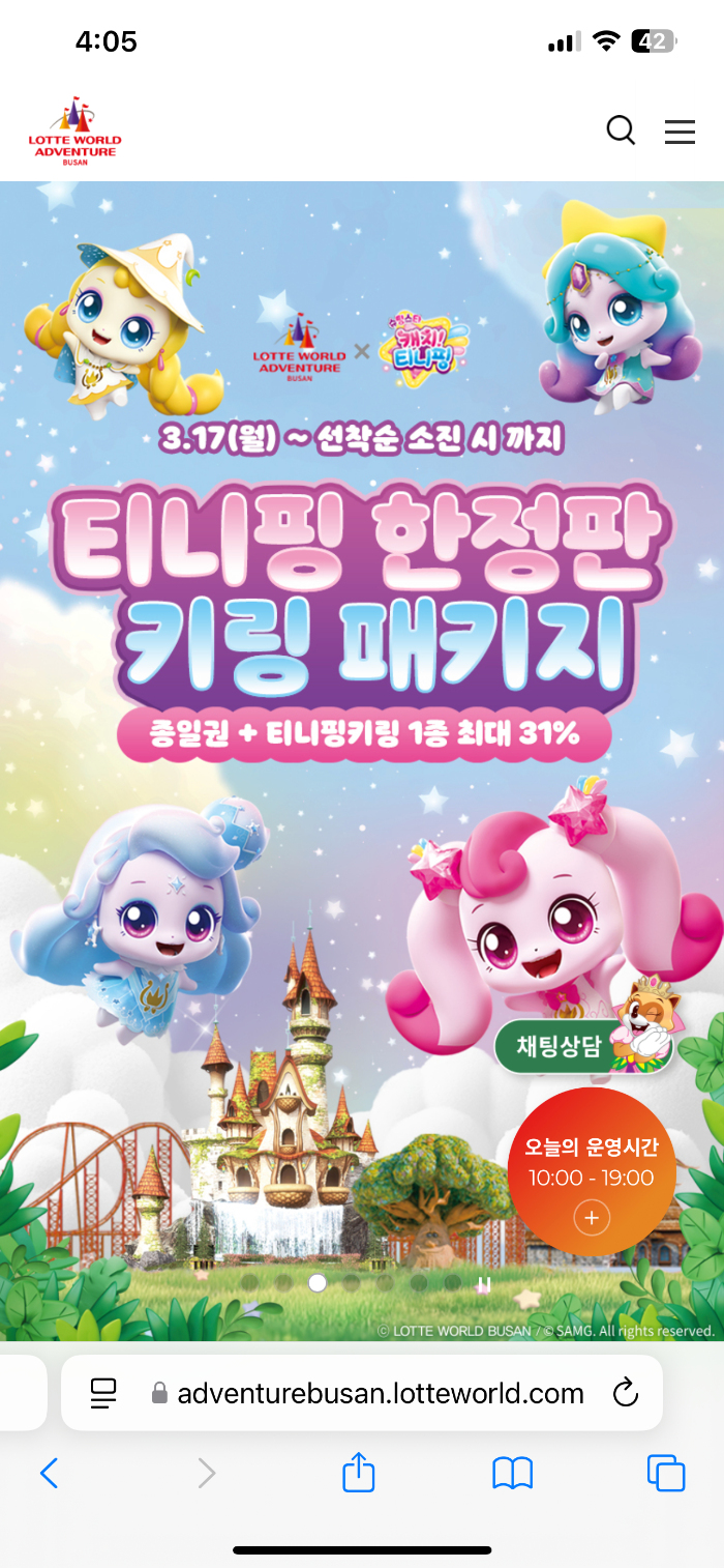 부산 롯데월드 50%할인 받고 입장하였는데 신용카드할인 후기 공유합니다. (아이들과 엄마는 연간회원권 할인구매 했던 것으로 입장했어요.) 2025년 캐치티니핑 2025년 3월 22일에 시작해서 6월까지 합니다. 티니핑으로 꾸며진 부산롯데월드 기대되는데요~ 바로 내일!! 불꽃놀이 3월 22일 토요일 시작됩니다. 부산 롯데월드에도 귀신의집 귀문 악령의동굴이 4월 오픈한다해서 기대가 됩니다. 유아, 키 130cm이하 아이가 탈만한 놀이기구 어트랙션 따로 추천합니다.