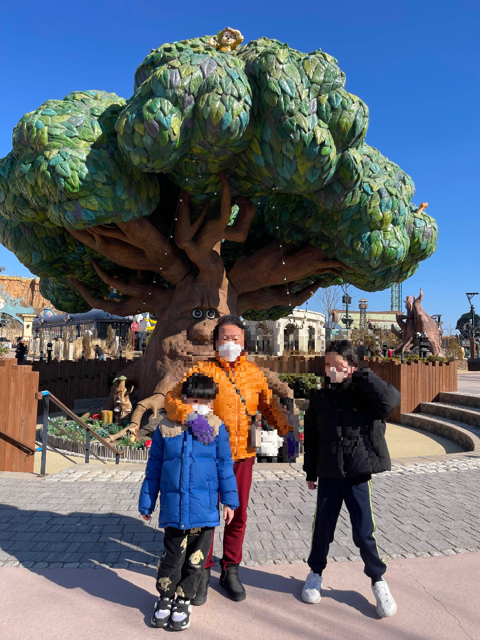 엄마와 두아이는 연간회원권 목에 걸고 입장