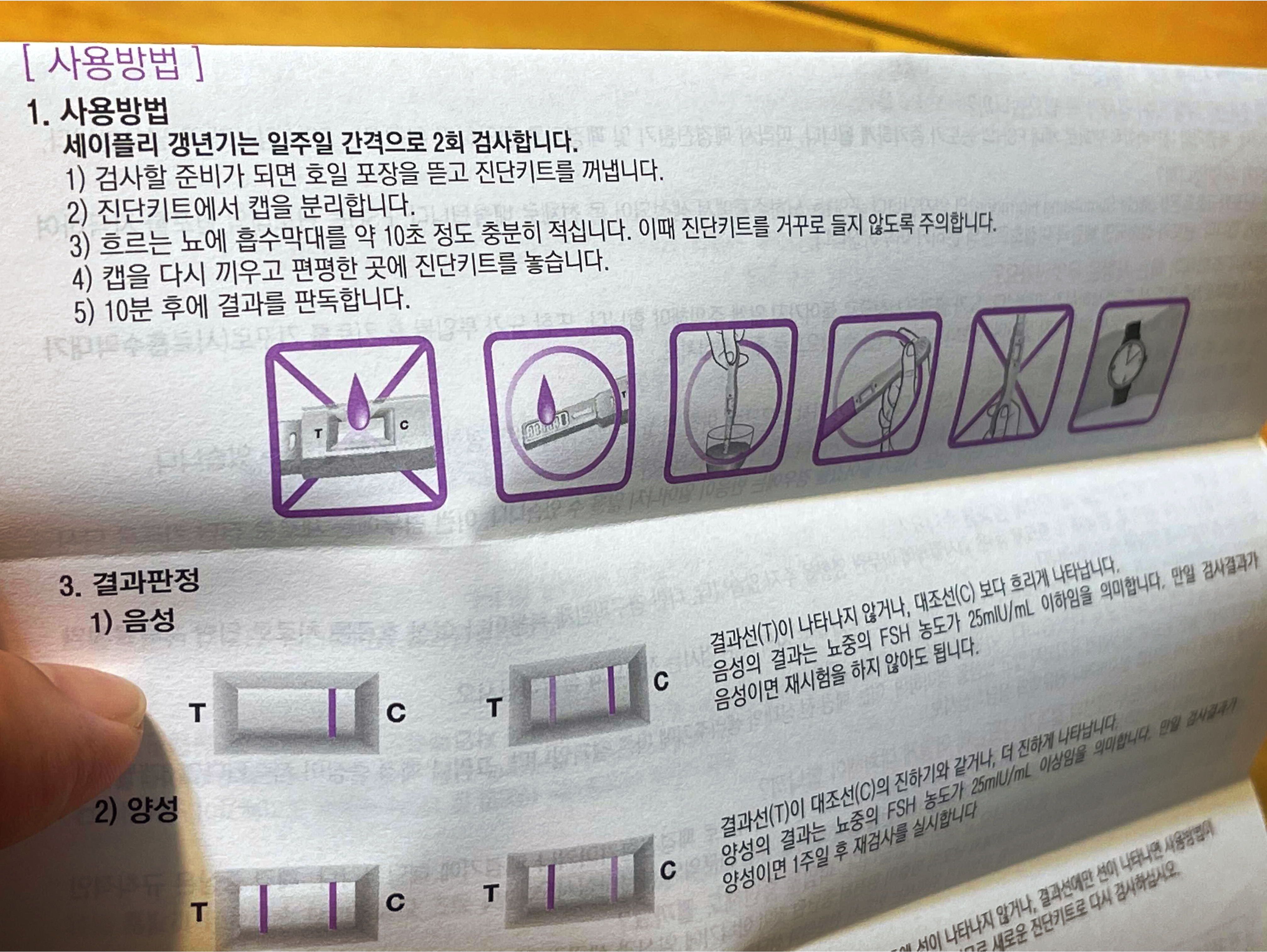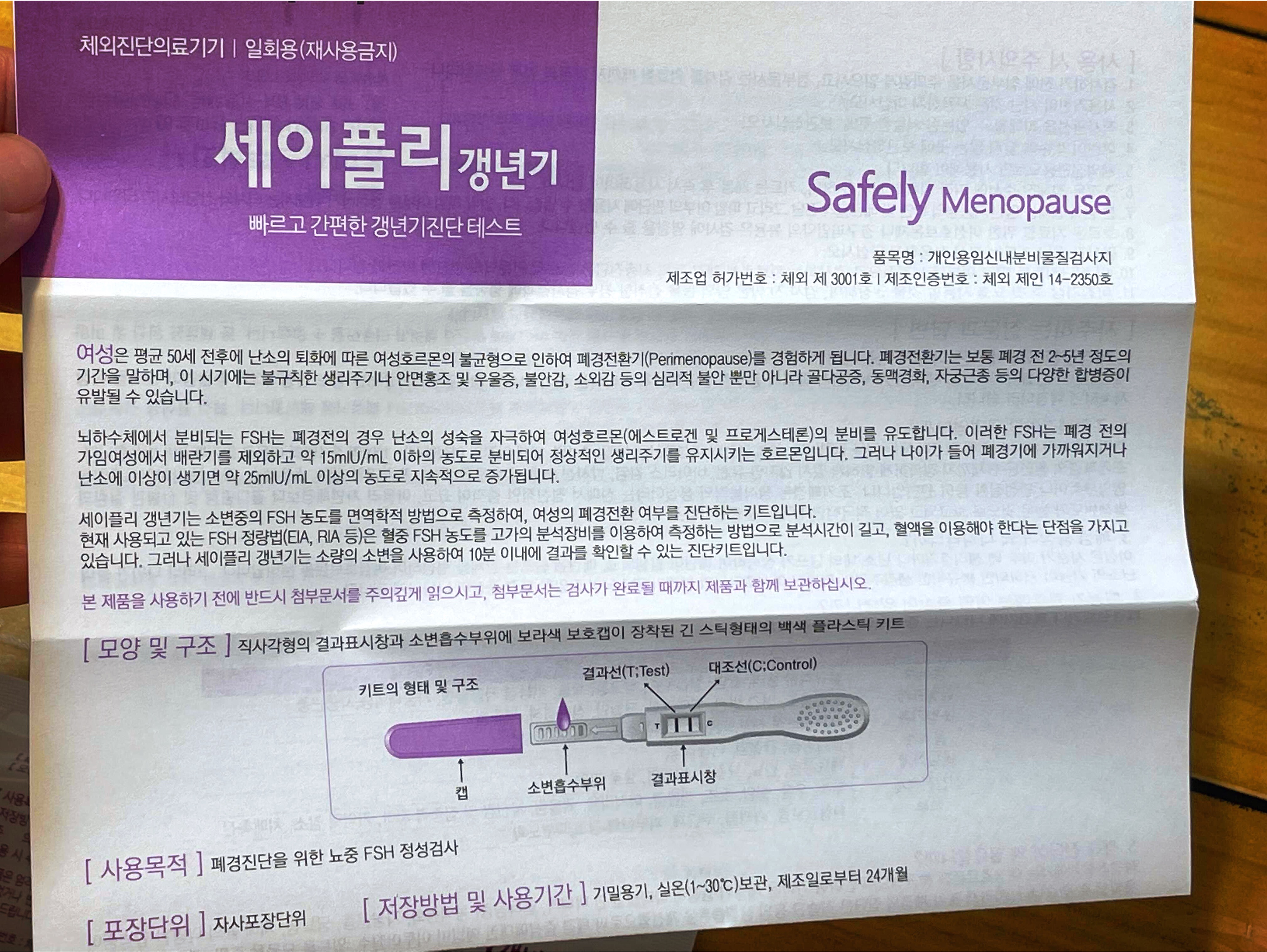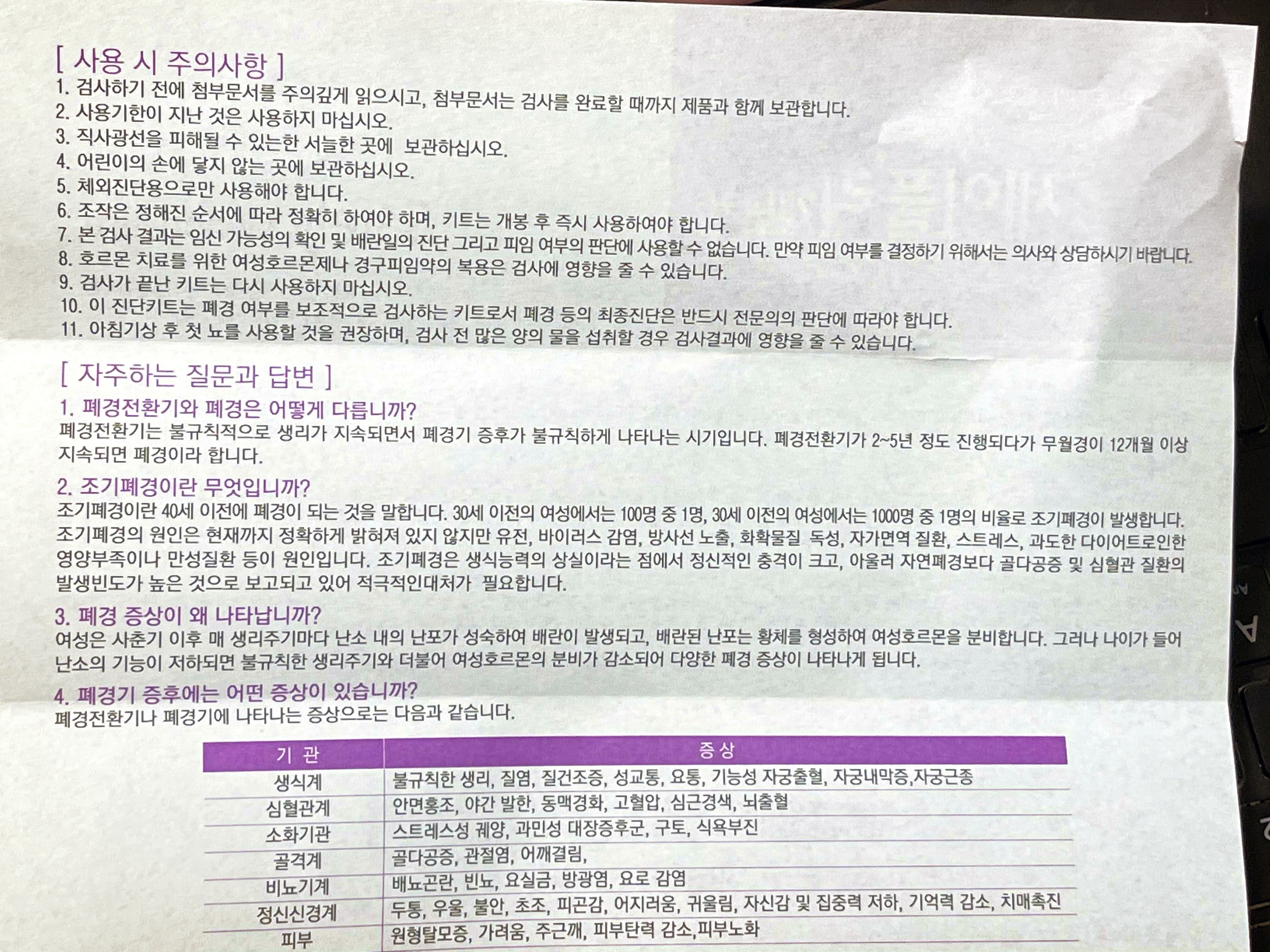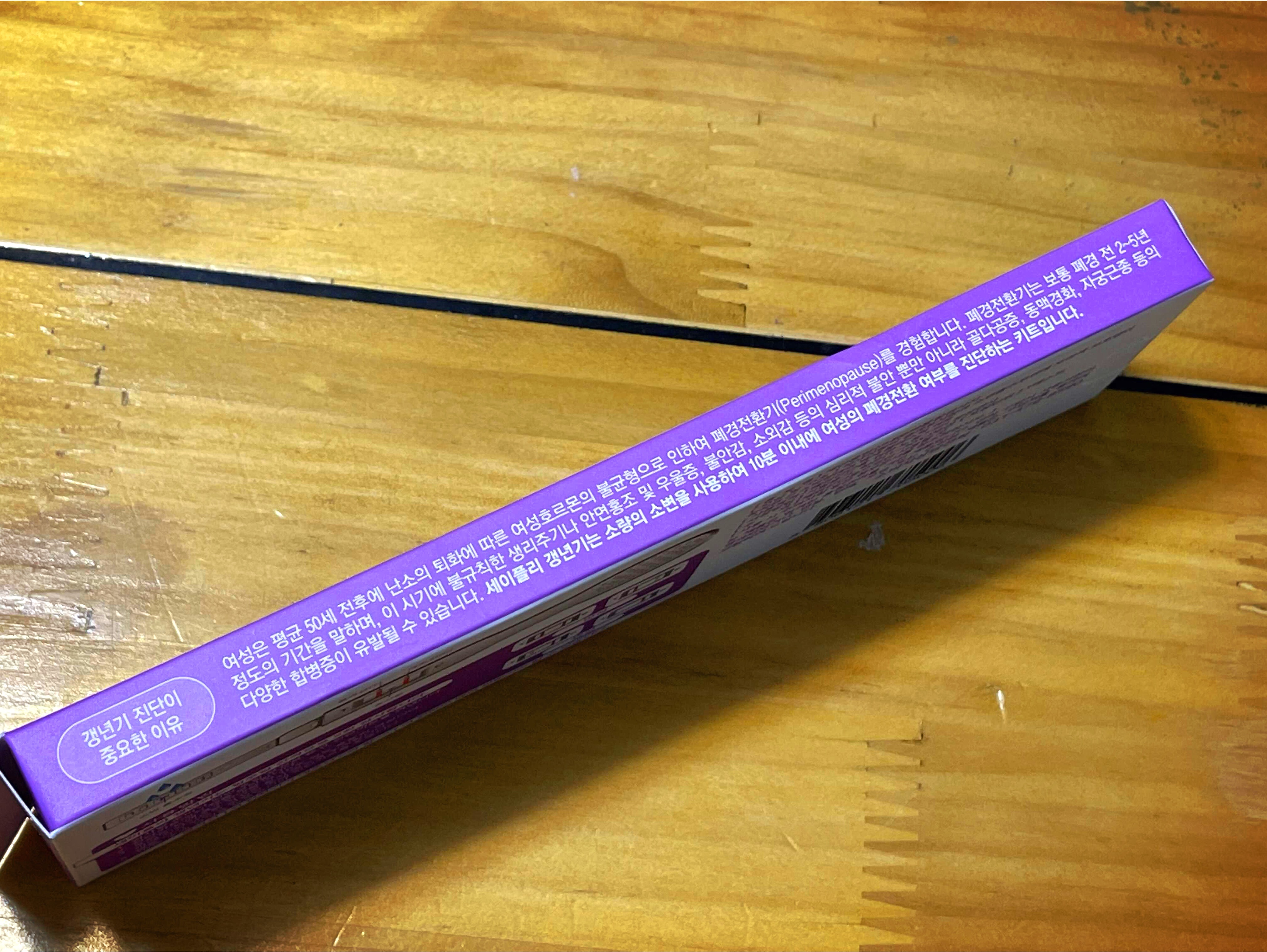부산성모병원에 매달가는데, 이번에는 아들 부비동염때문에 2주만에 갔다. 그리고 약국에 들어선 순간, 뭐? 소변으로 갱년기 테스트를 한다고? 깜짝 놀랐다, 유심히 보다가 일단 두개를 달라고함. 사실 임테기에 비하면 어마어마하게 비쌈.