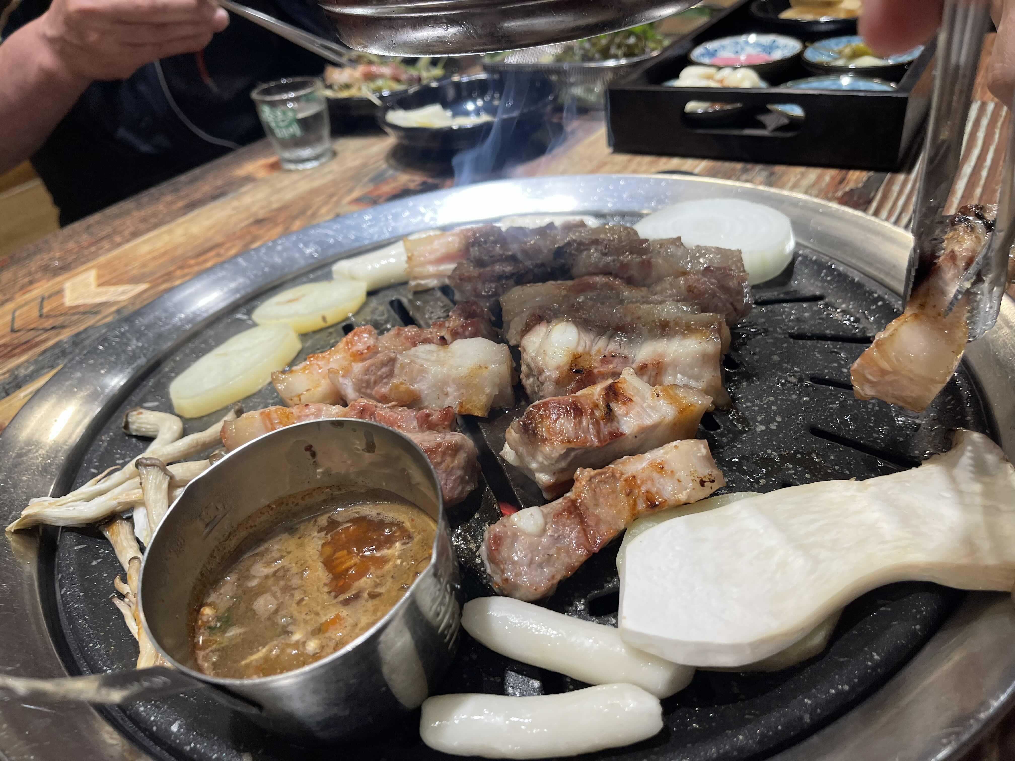 첫 삼겹살 받았을때 불판이 왜그리 답답하던지