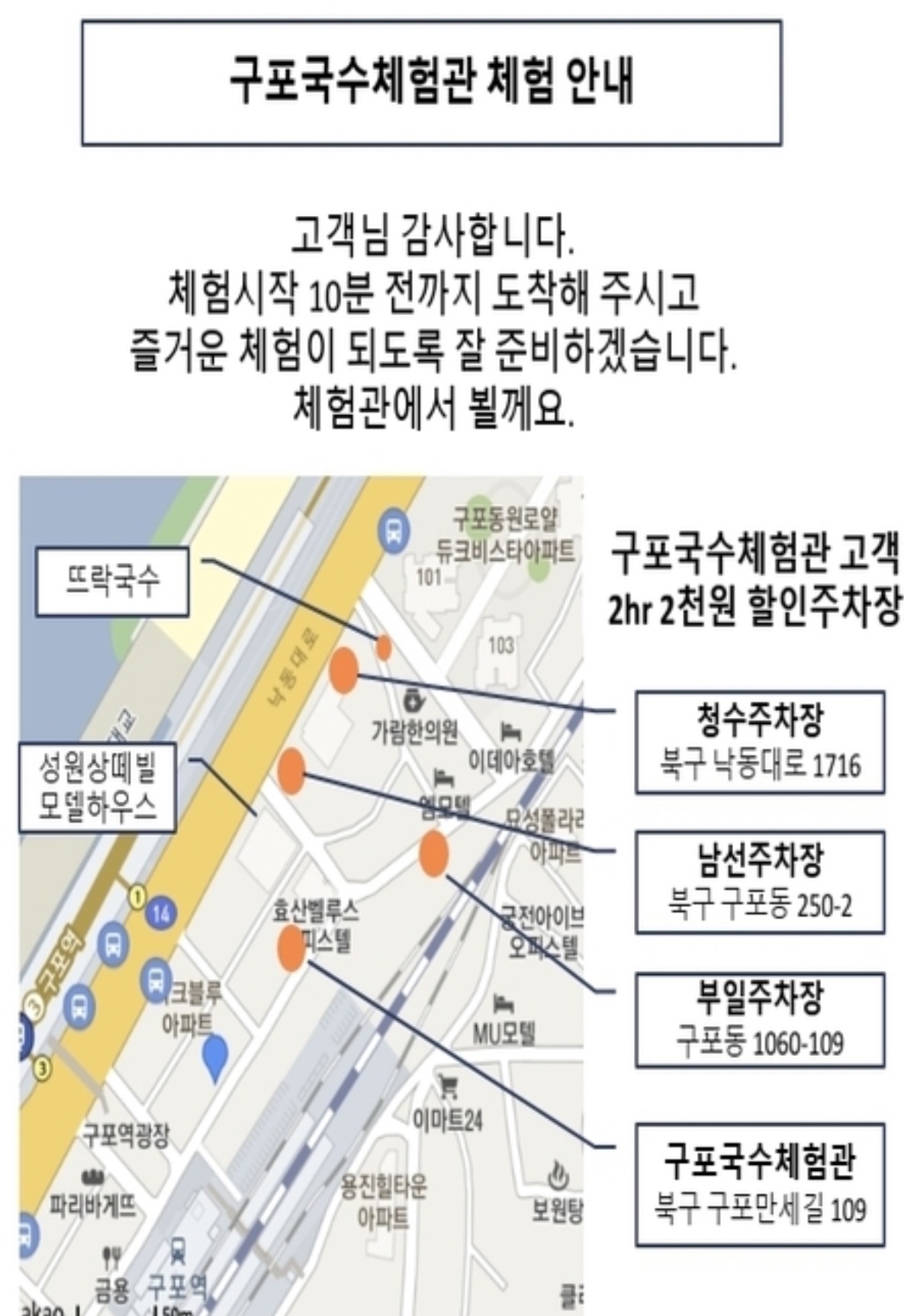 체험신청자에게 구포국수 식권 1매, 6세미만 자녀 보호자 무료입장