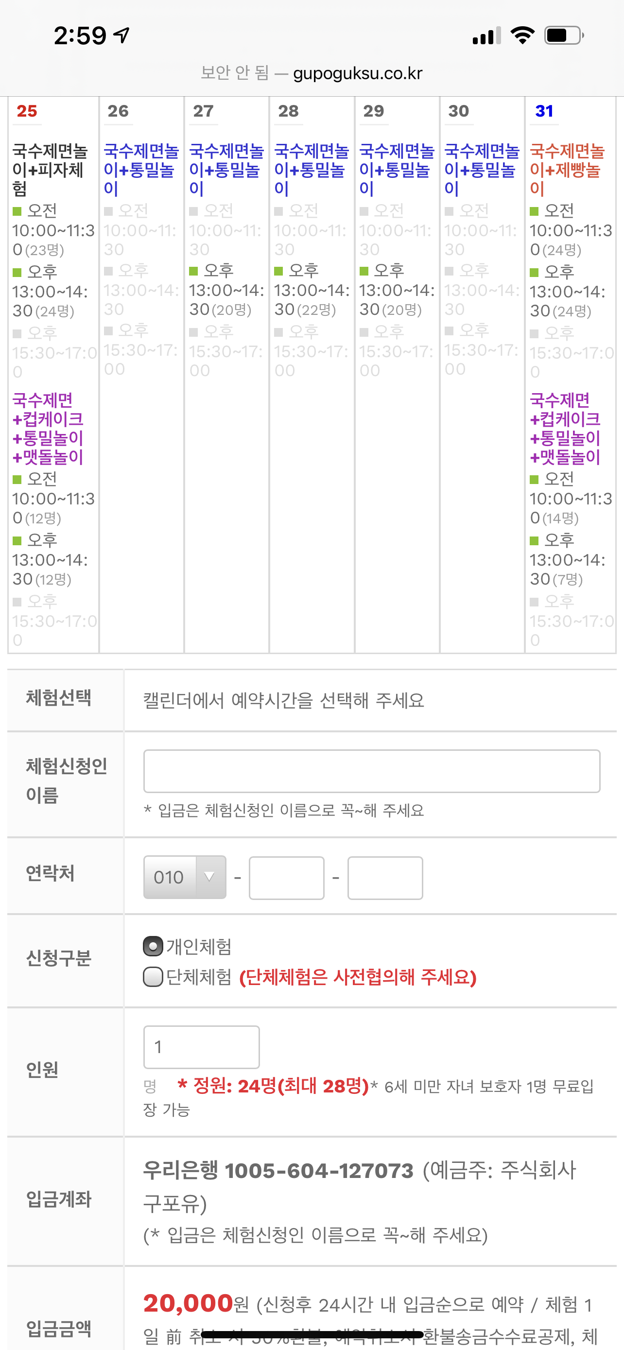 체험이용료는 2만원, 체험신청자에게 구포국수 식권 1매 제공, 6세미만 자녀보호자 1명 무료입장