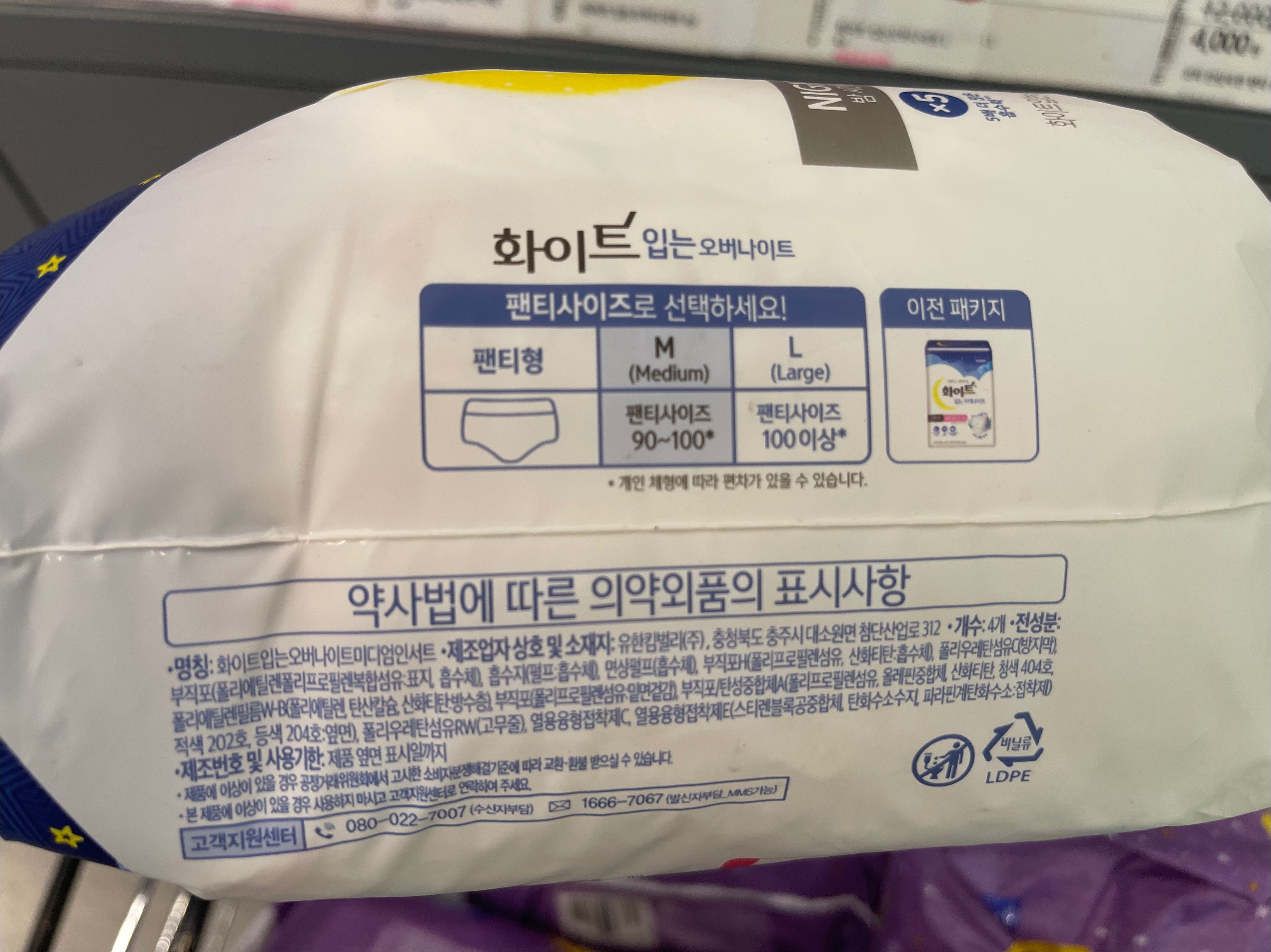 입는 오버나이트중 4개 9400원으로 제일 비싸지만