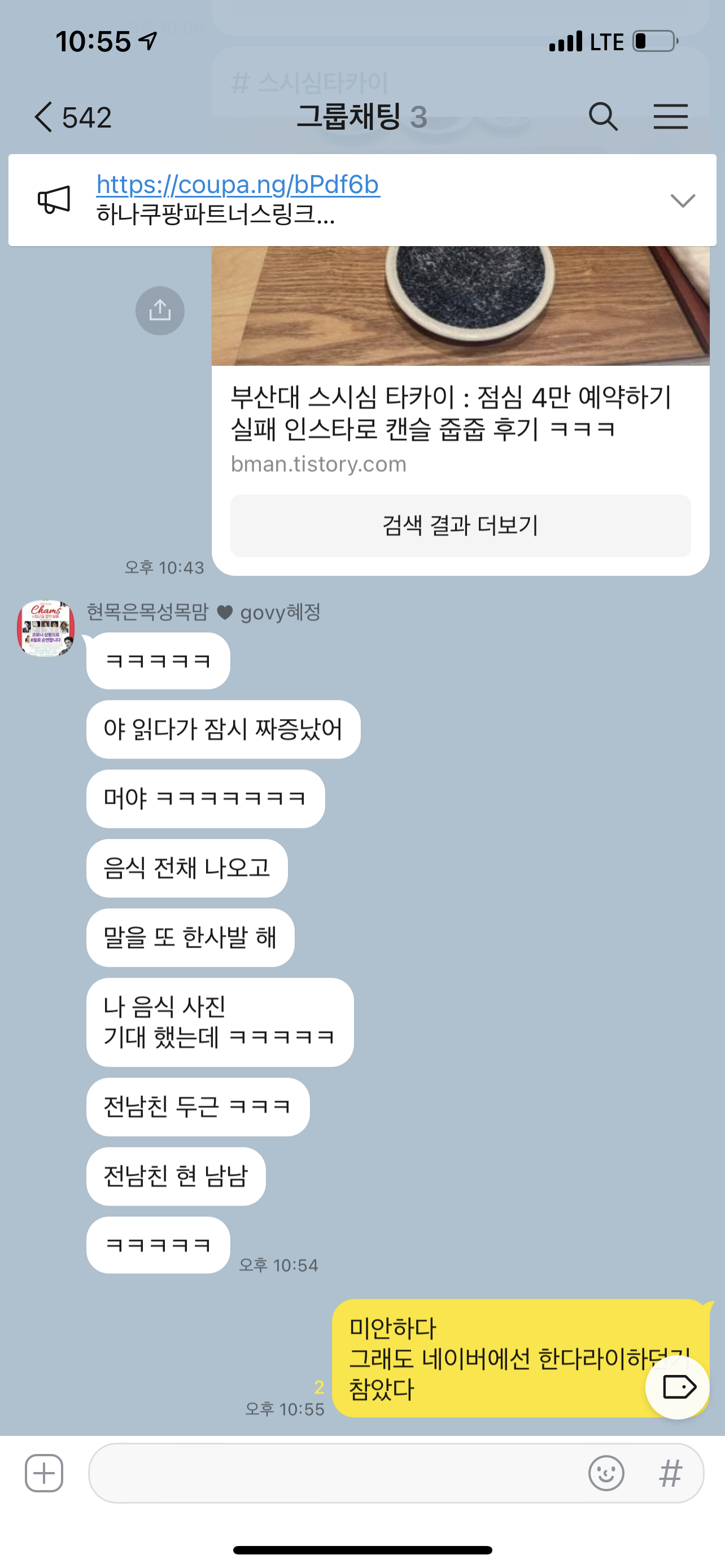 와이프더러 자기가 예약해놨으니까 가서 먹으라고 인심
