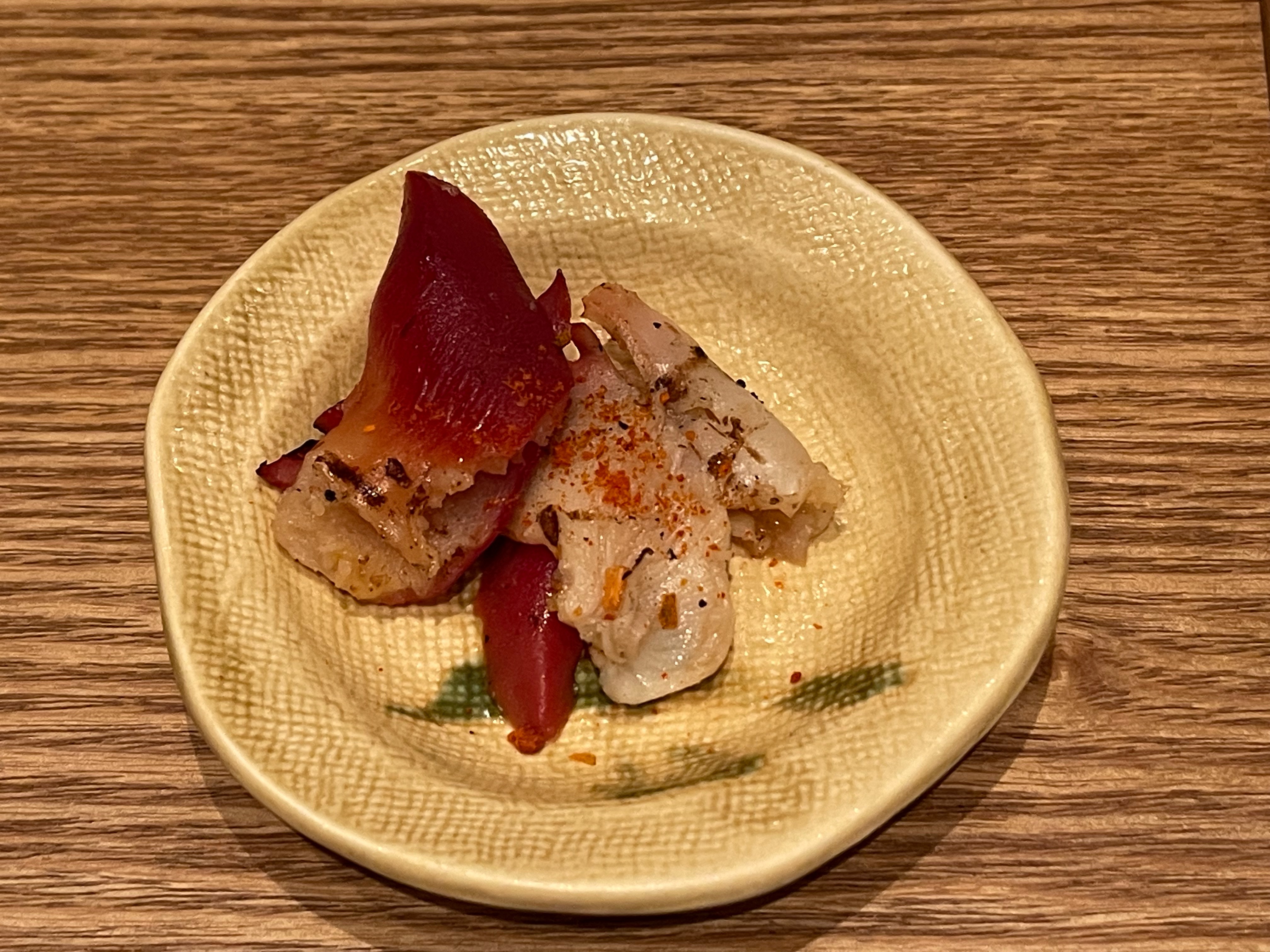 그치만 이렇게 조개를 얇게 저며서 데쳐서 구워주시는데