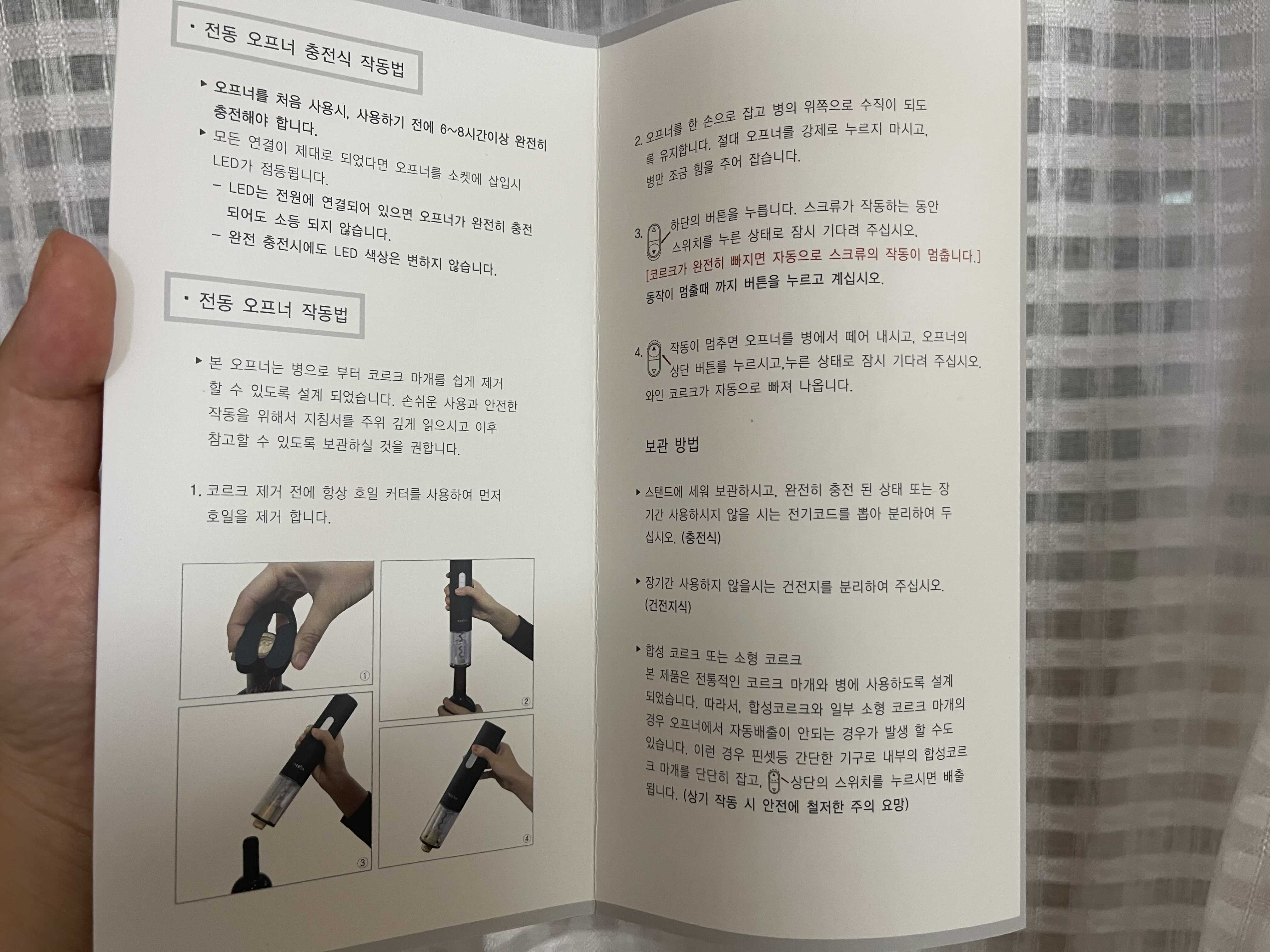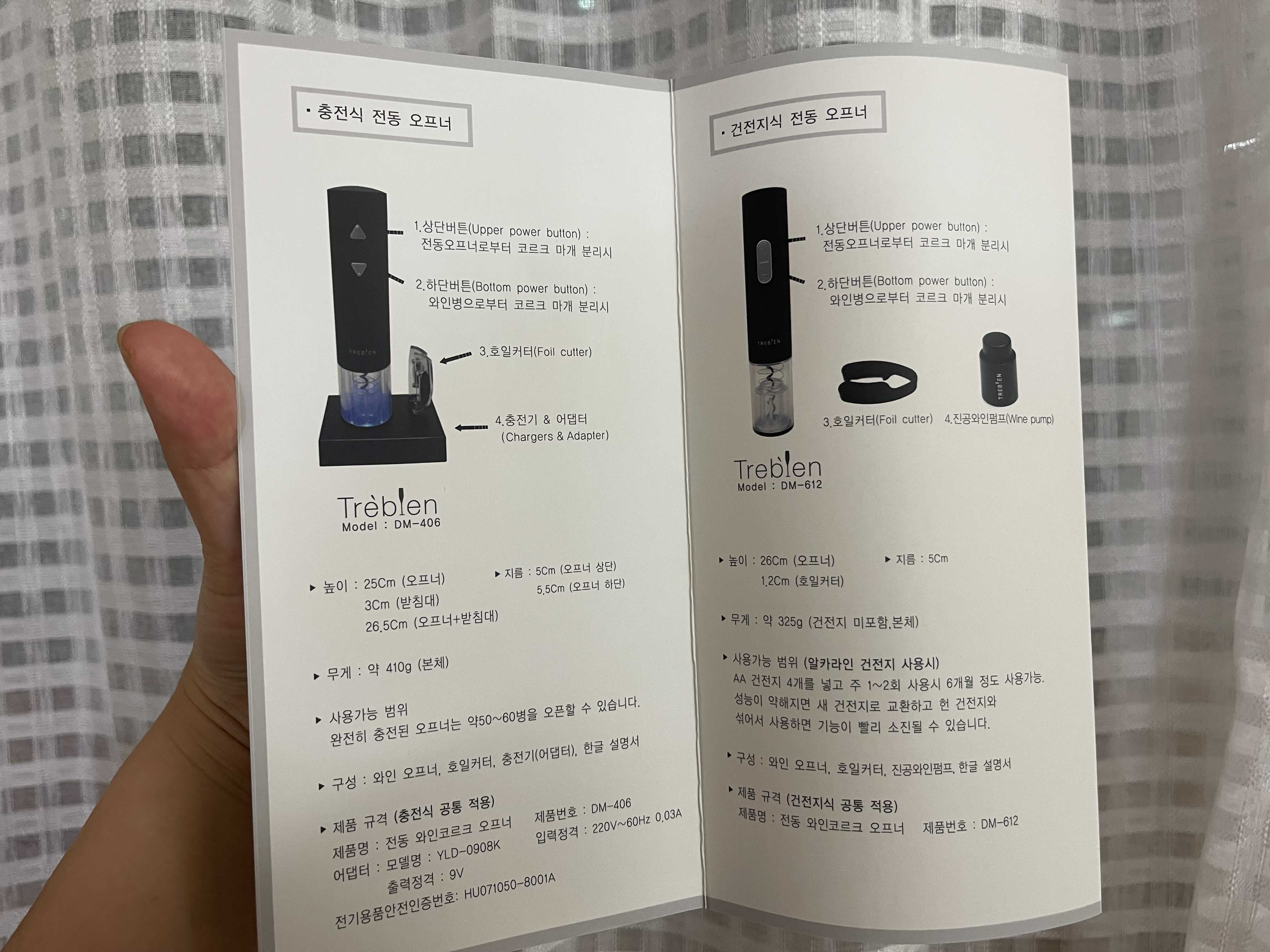 구성 : 와인오프너, 호일커터, 충전기(어댑터), 한글설명서