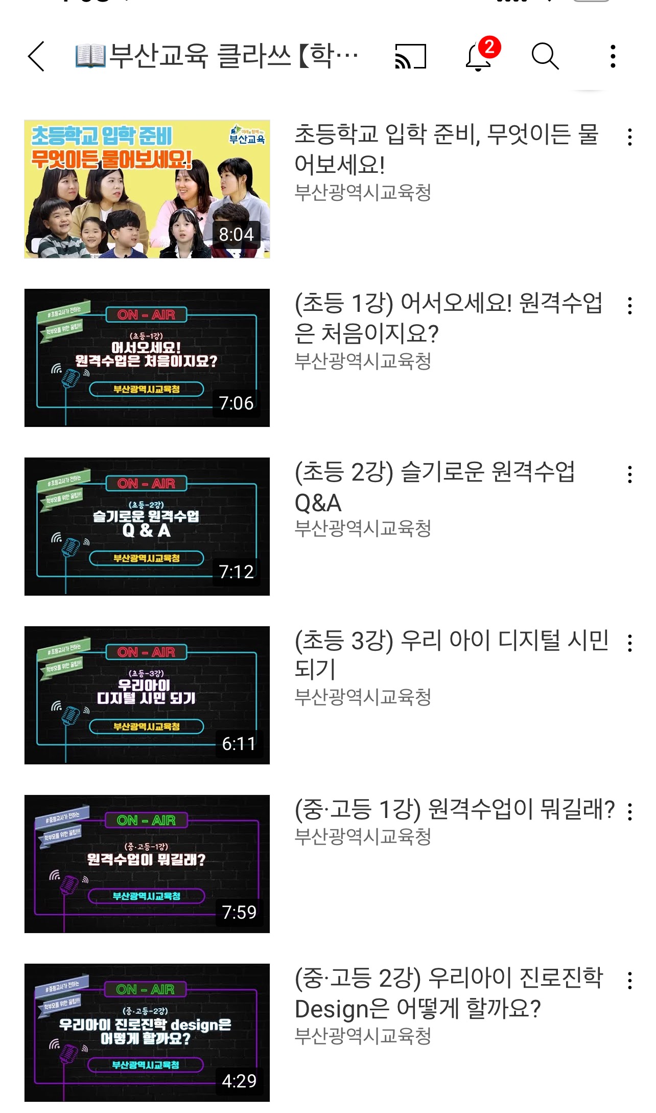 유치원 초중고 영상들 많아서 재생목록을 공유행