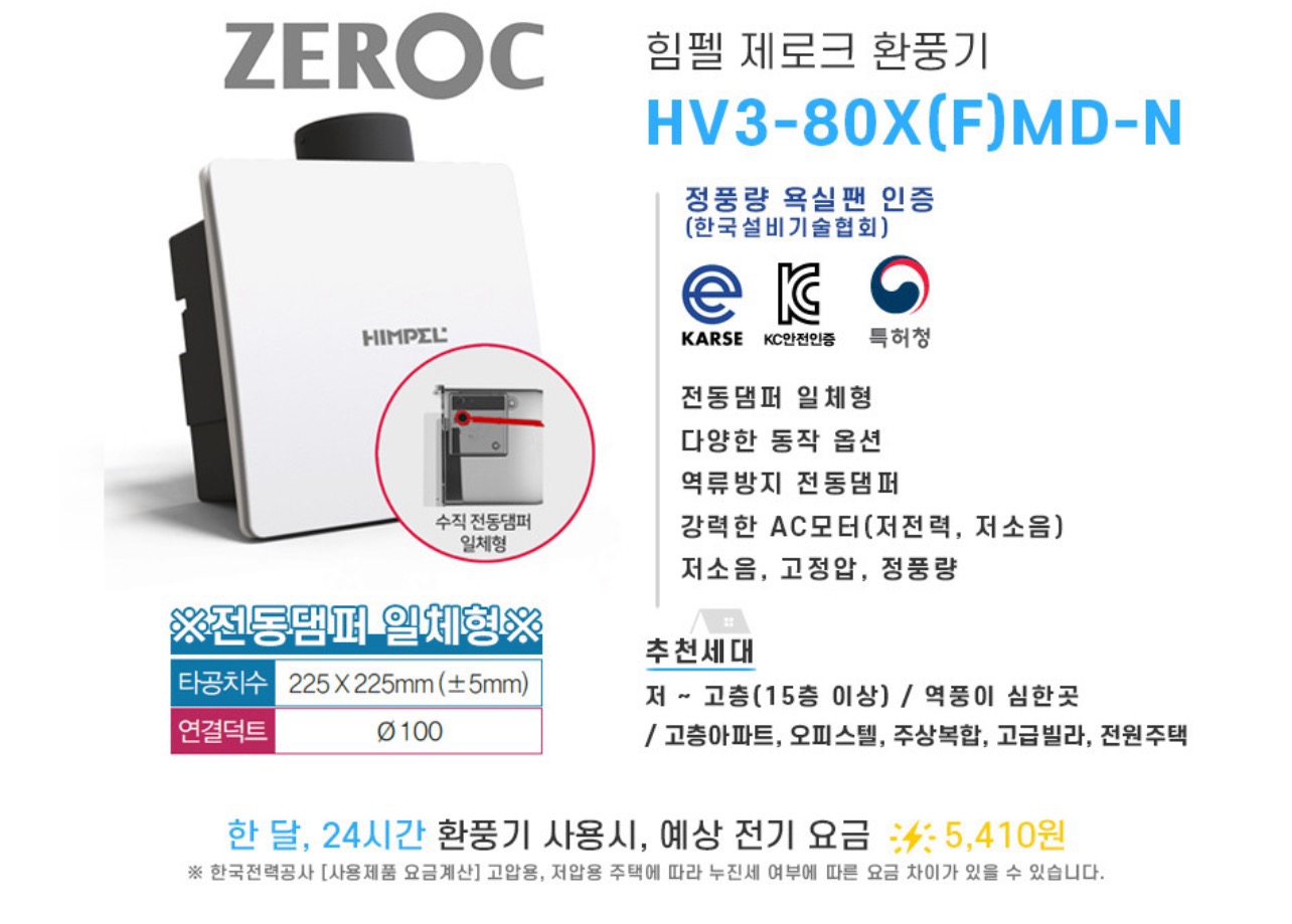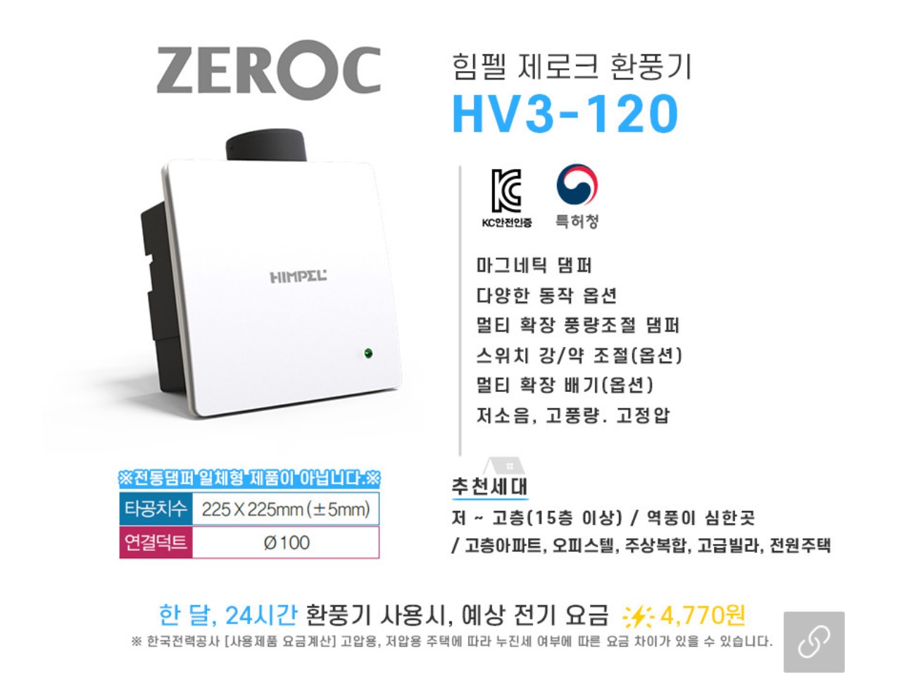 정풍량팬 / 힘펠 제로크 : 아파트 고층 추천