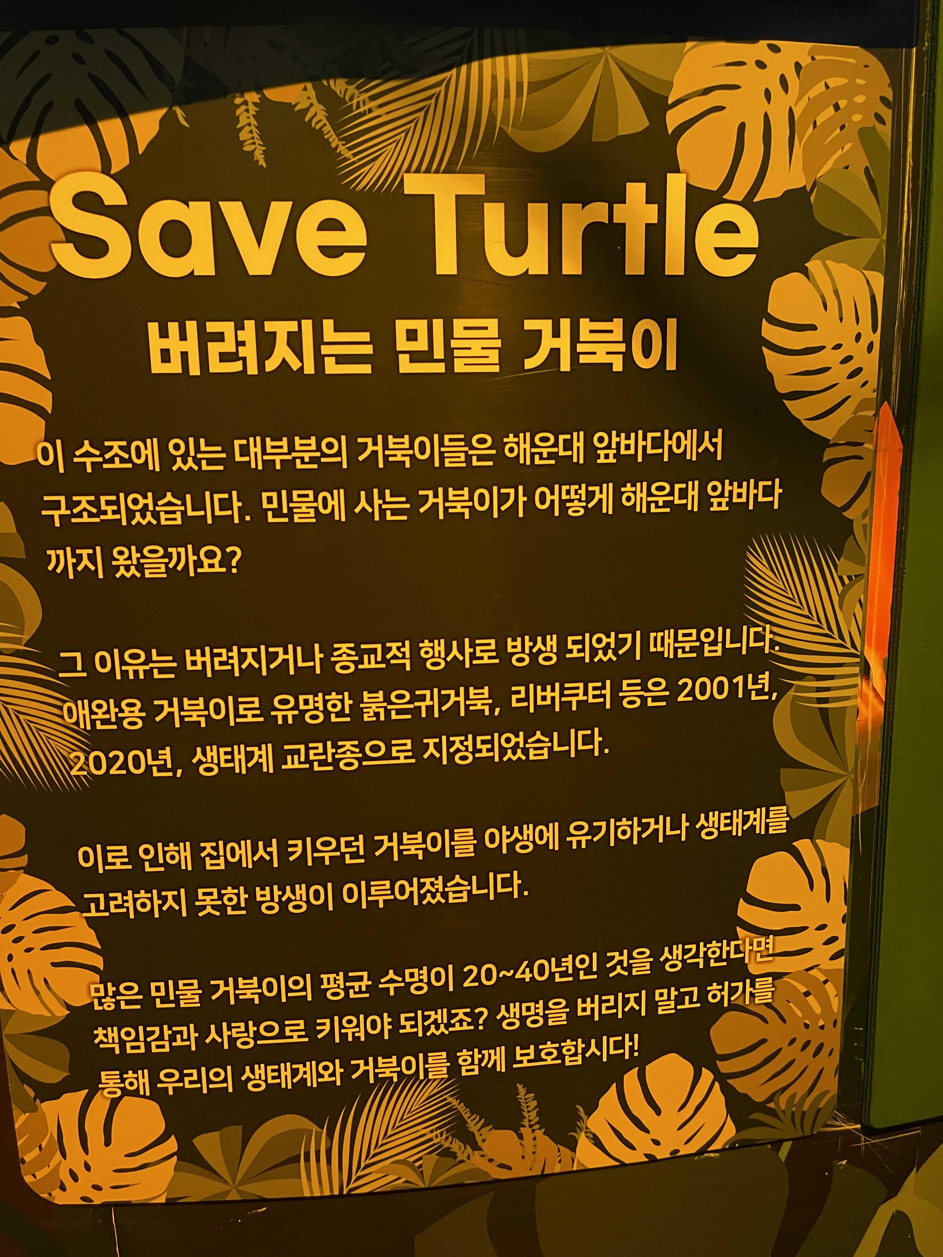 책임감있게 생태계와 거북이를 보호 하자는 문구가 있었습니다.