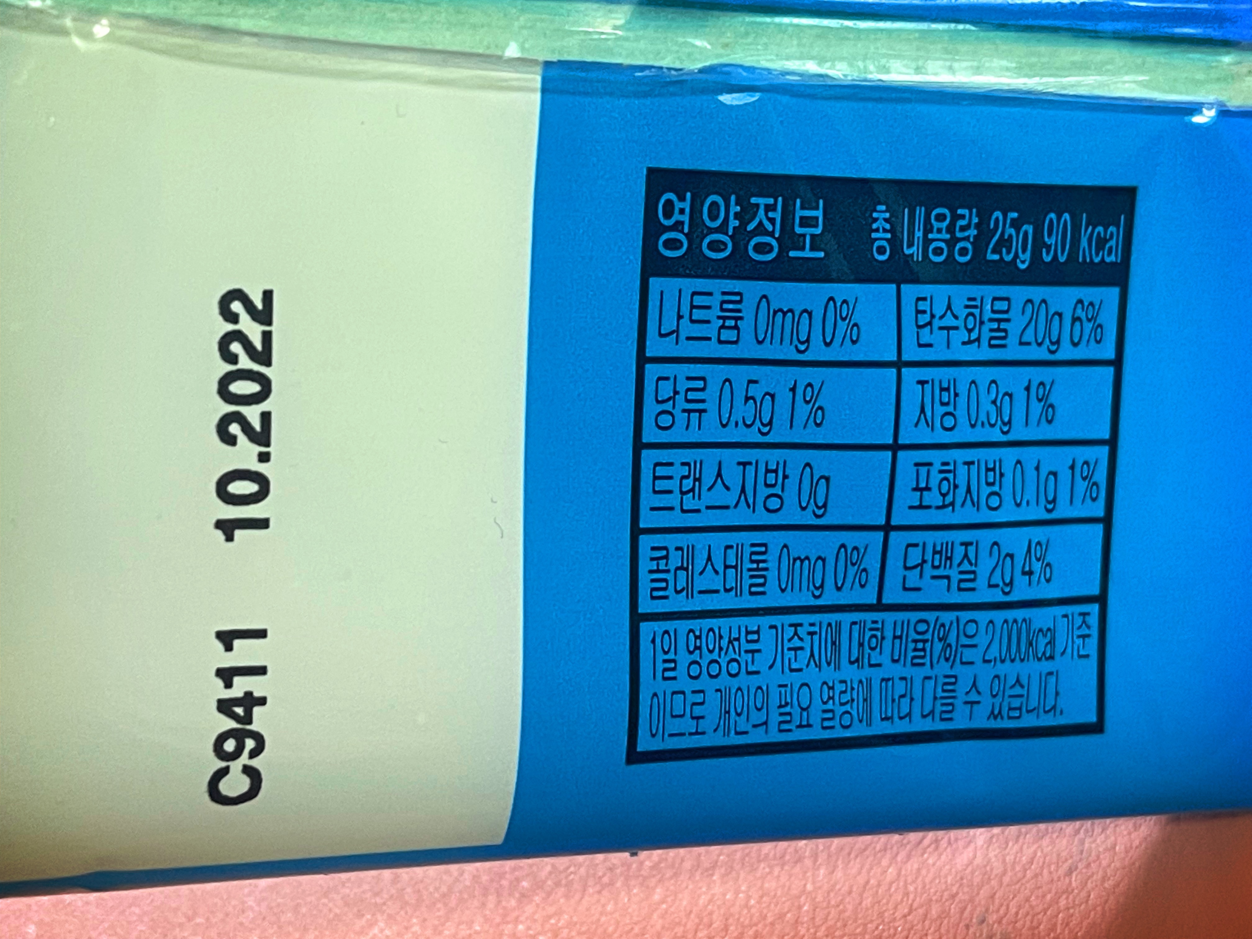 소맥분, 감자전분, 합성향료(투티프루티향) 유화제(해바라기레시틴), 감미료(수크랄로스) 착색료(식용색소청색1호)