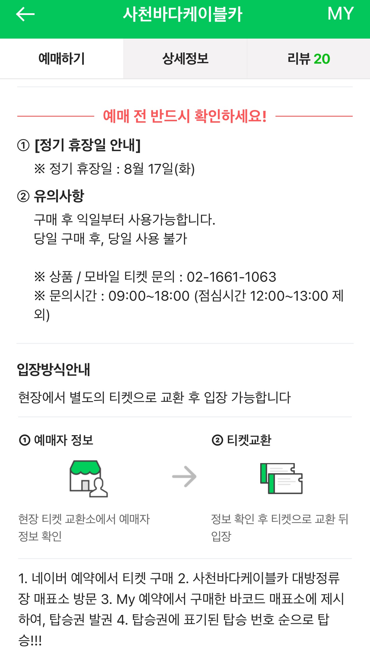 네이버 예약에서 티켓 구매 >> 사천 바다케이블카 대방정류장에서 매표소 방문
