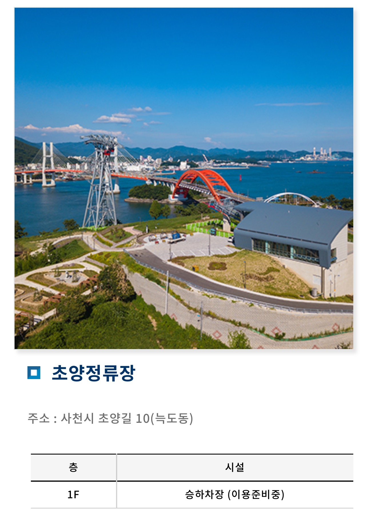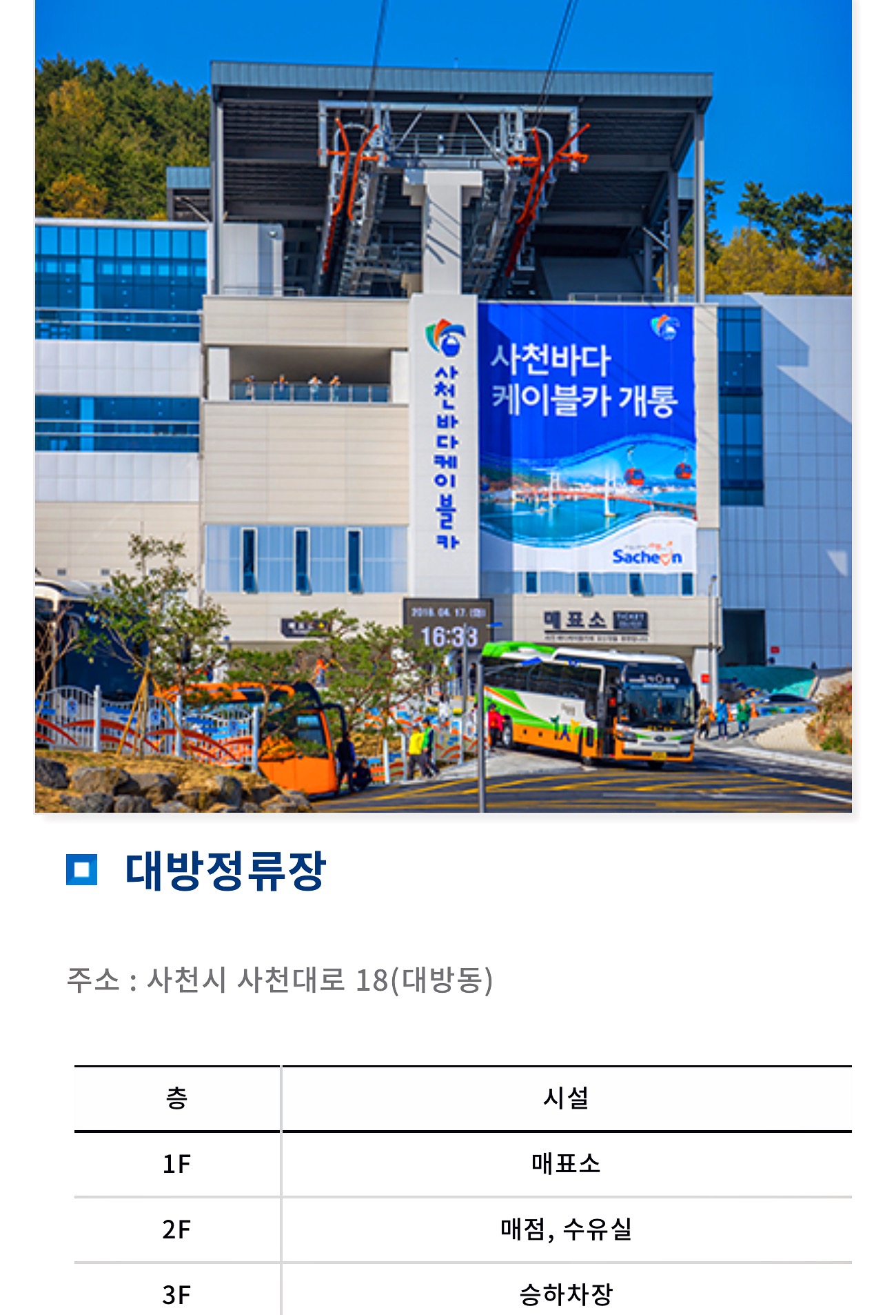 사천바다케이블카소개, 이용정보안내, 대기/발권번호 정보, 시설안내, 주변관광소개