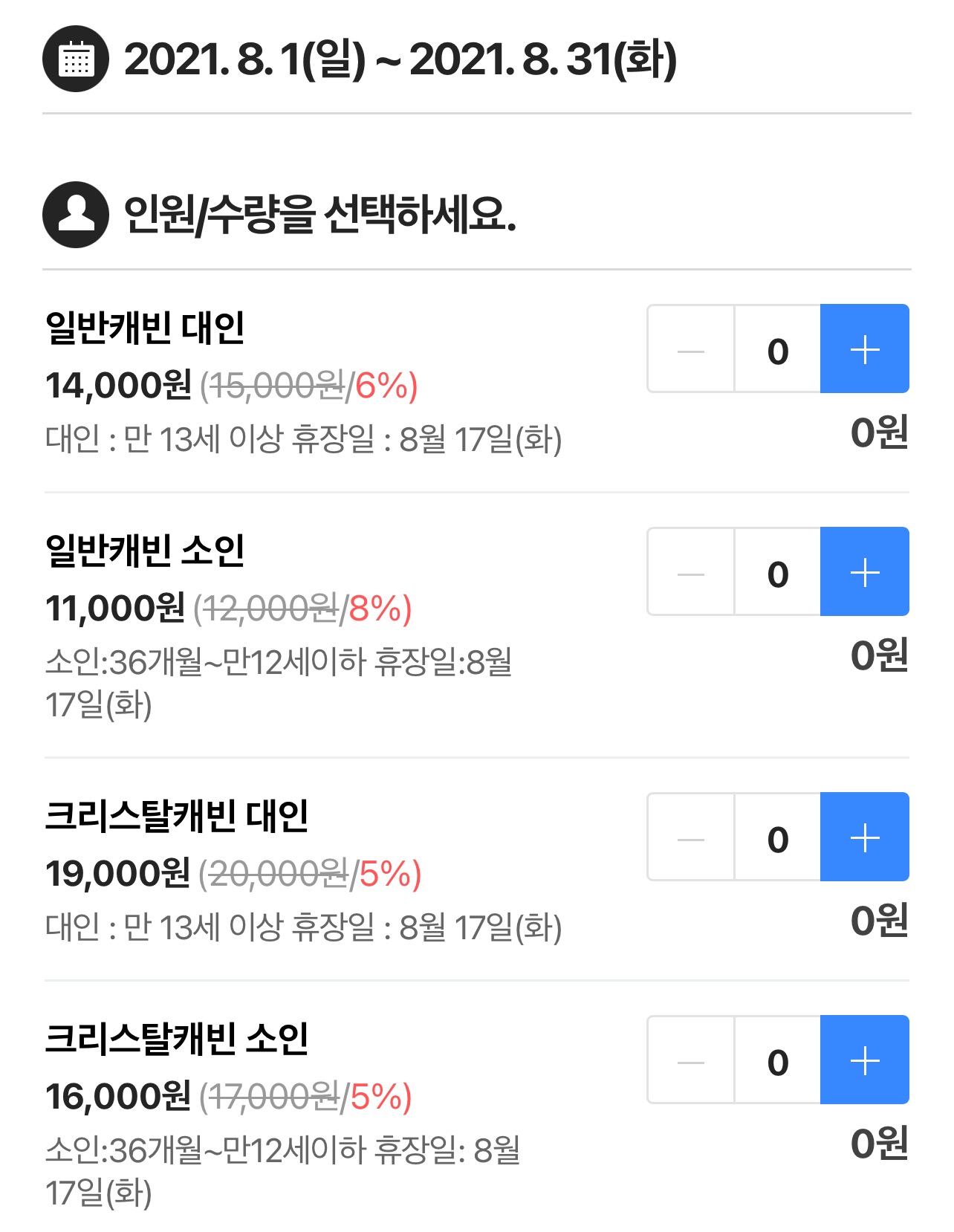 캐빈: 크리스탈 할인없음,일반 캐빈 3000원 할인