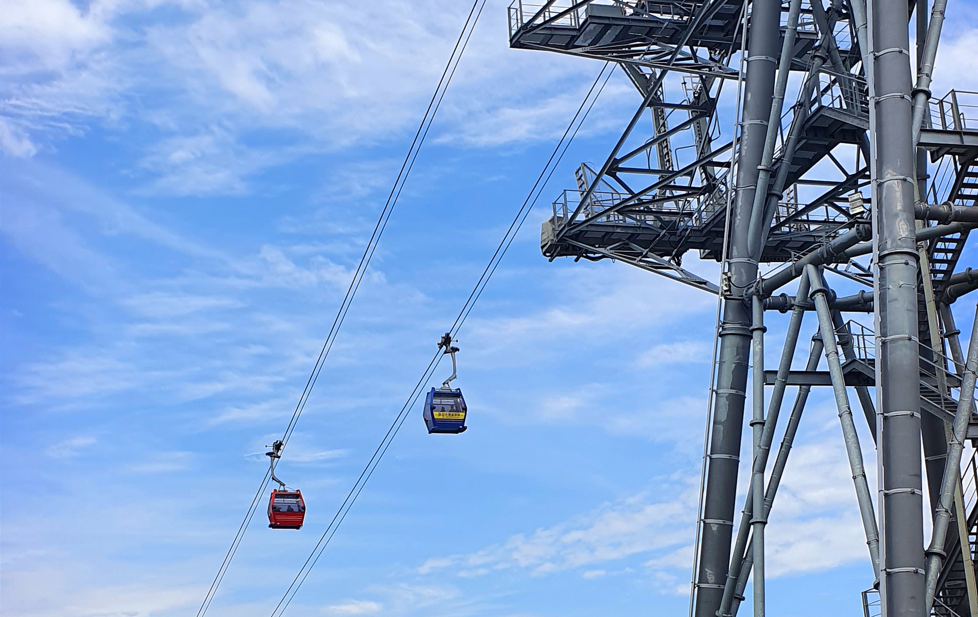 바다-섬-산 을 잇는 국내 최초의 케이블카로 2.43km