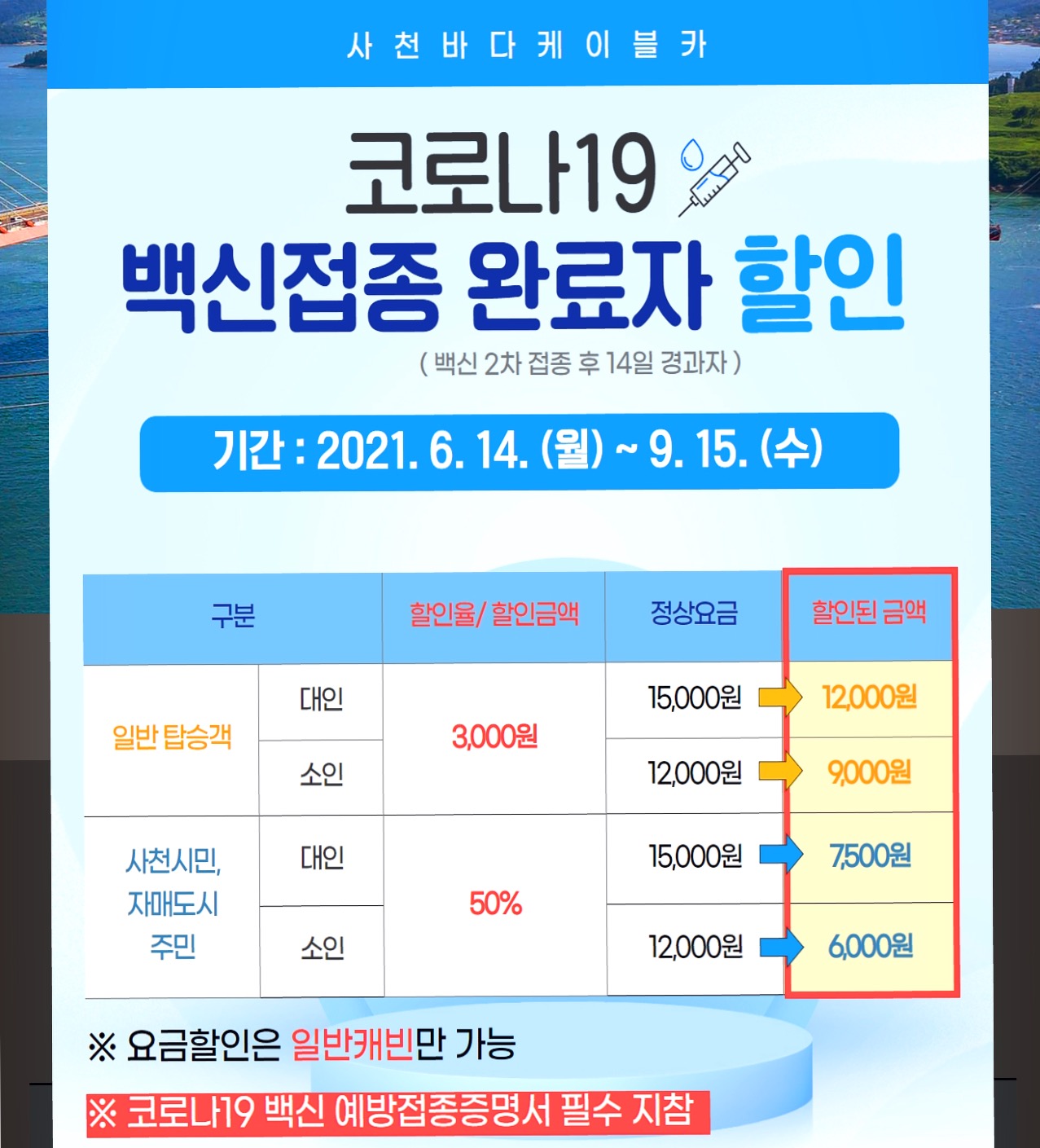 코로나19 백신 접종 완료자 사천케이블카 할인!!