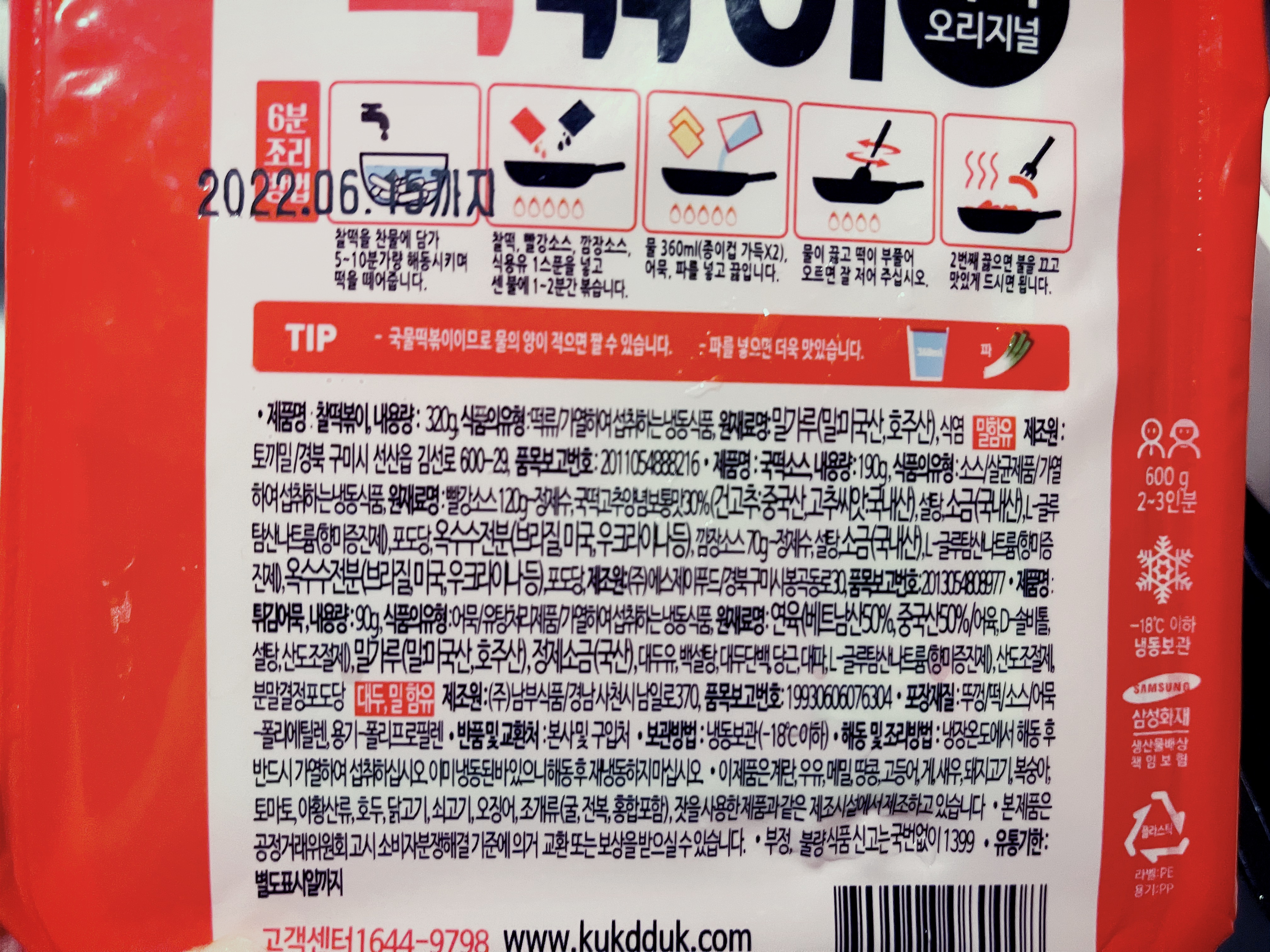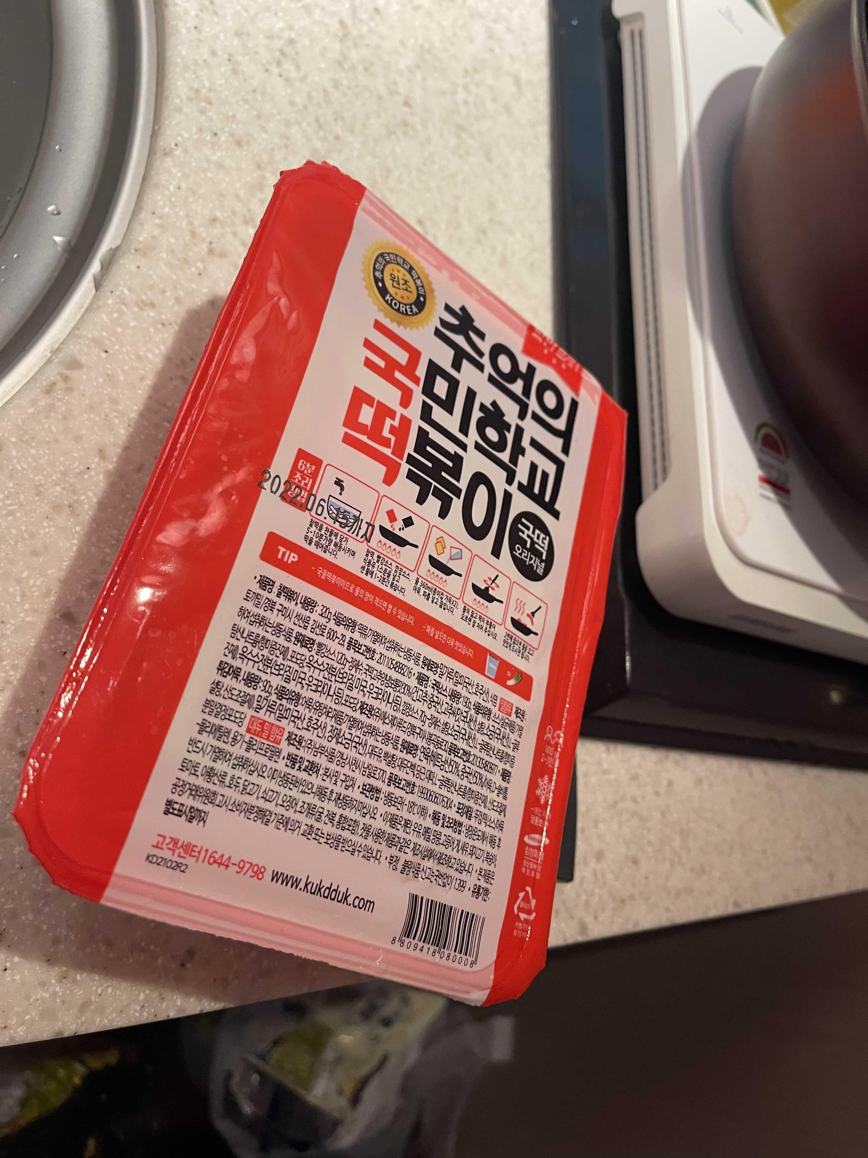 원재료명: 빨강소스 120g 정제수, 국떡 고추양념 보통맛 30%