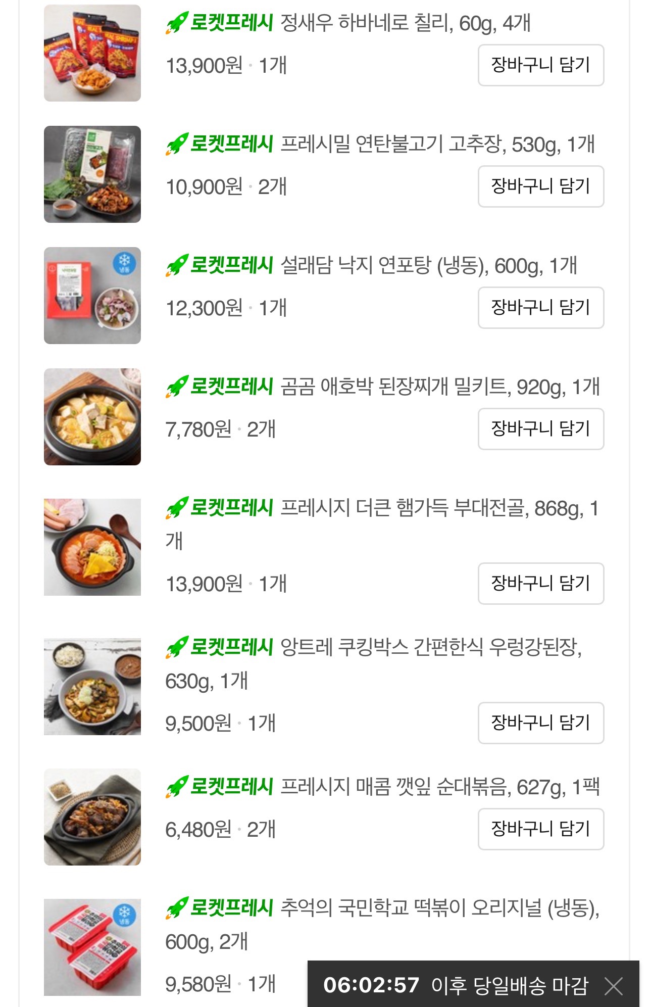 냉장 냉동식품들