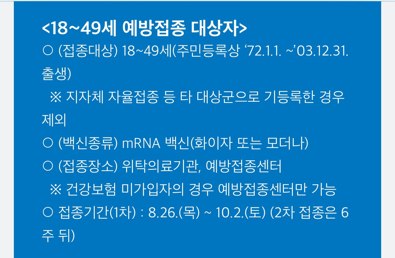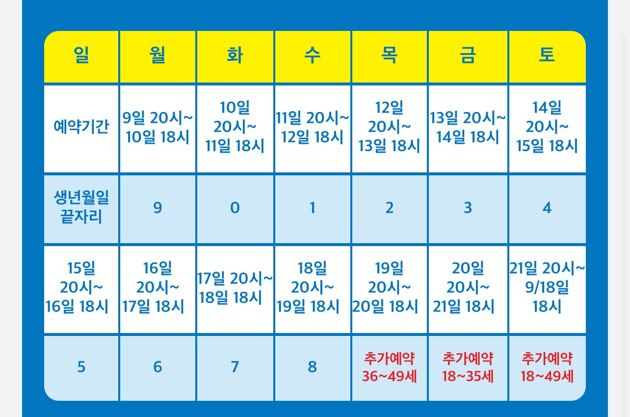 접종기간 1차: 8월 26일 목요일 ~ 10월 2일 토요일