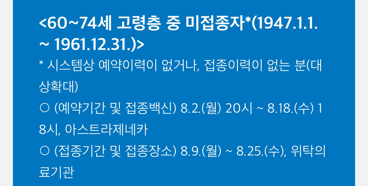 2021년 8월 16일 부터 백신접종을 예약한 사람도