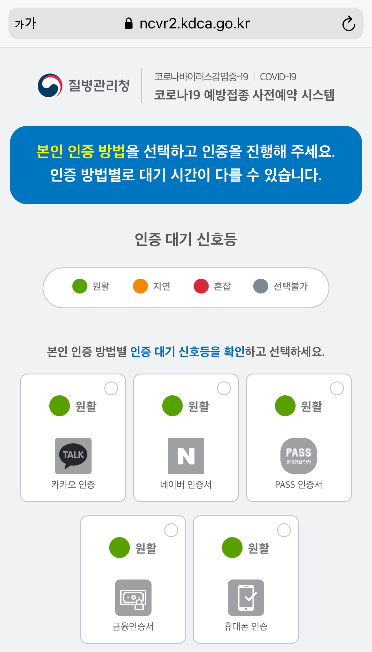 잔여백신 잡으려 할때 카카오 인증서를 쓰려했더니,