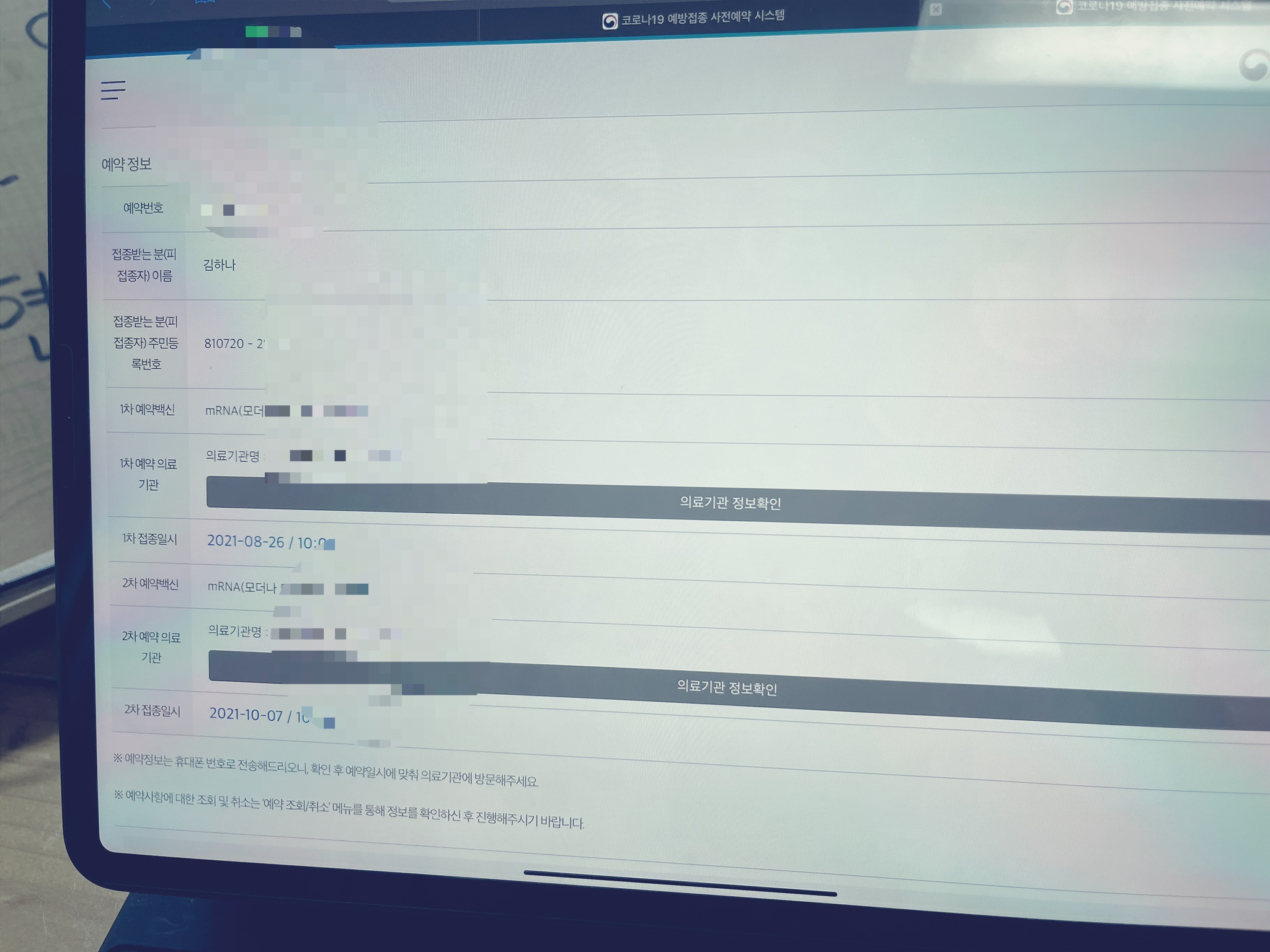 저 백신예약 성공했습니다.