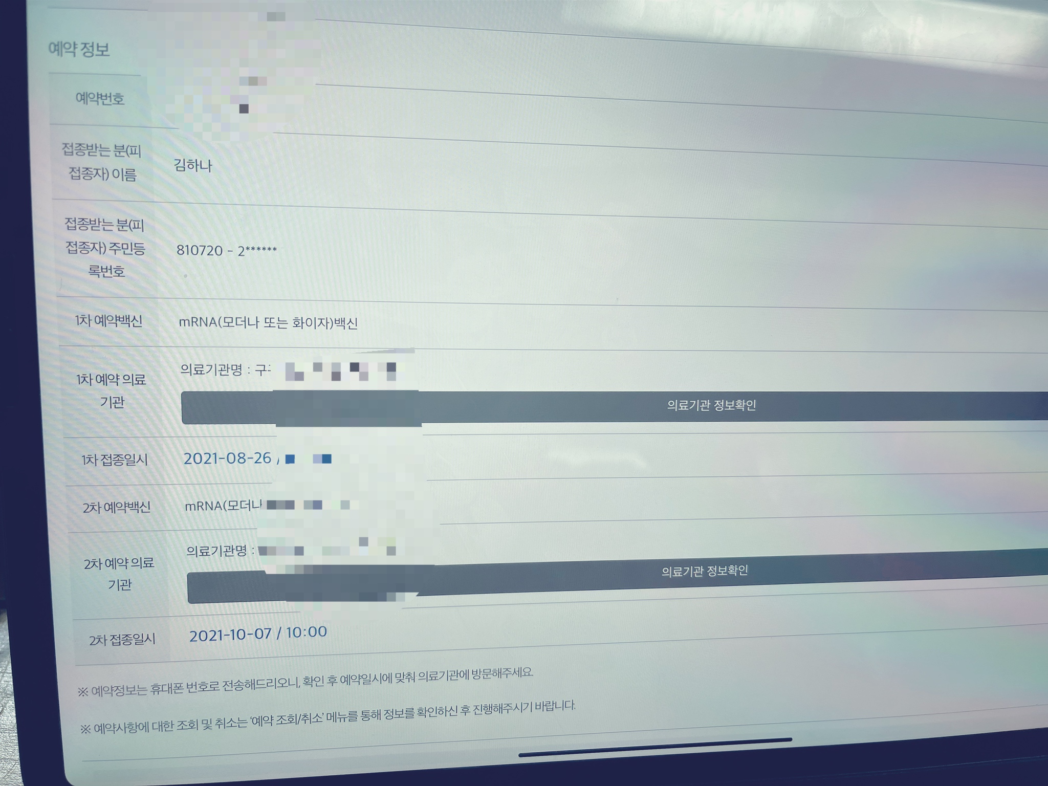 2차접종 : 2021년 10월 7일 오전 10시