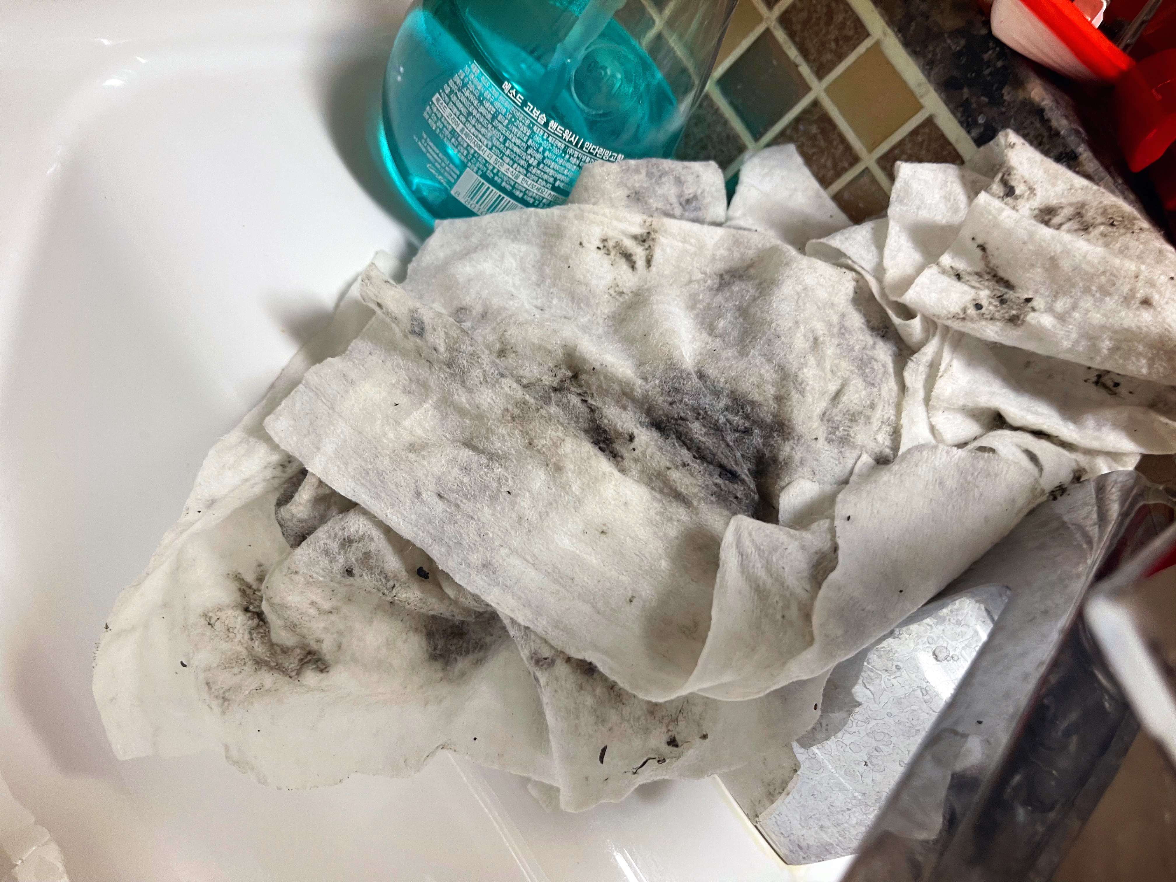 5 떨어진 먼지와 물티슈 비교 ㅠㅠ
