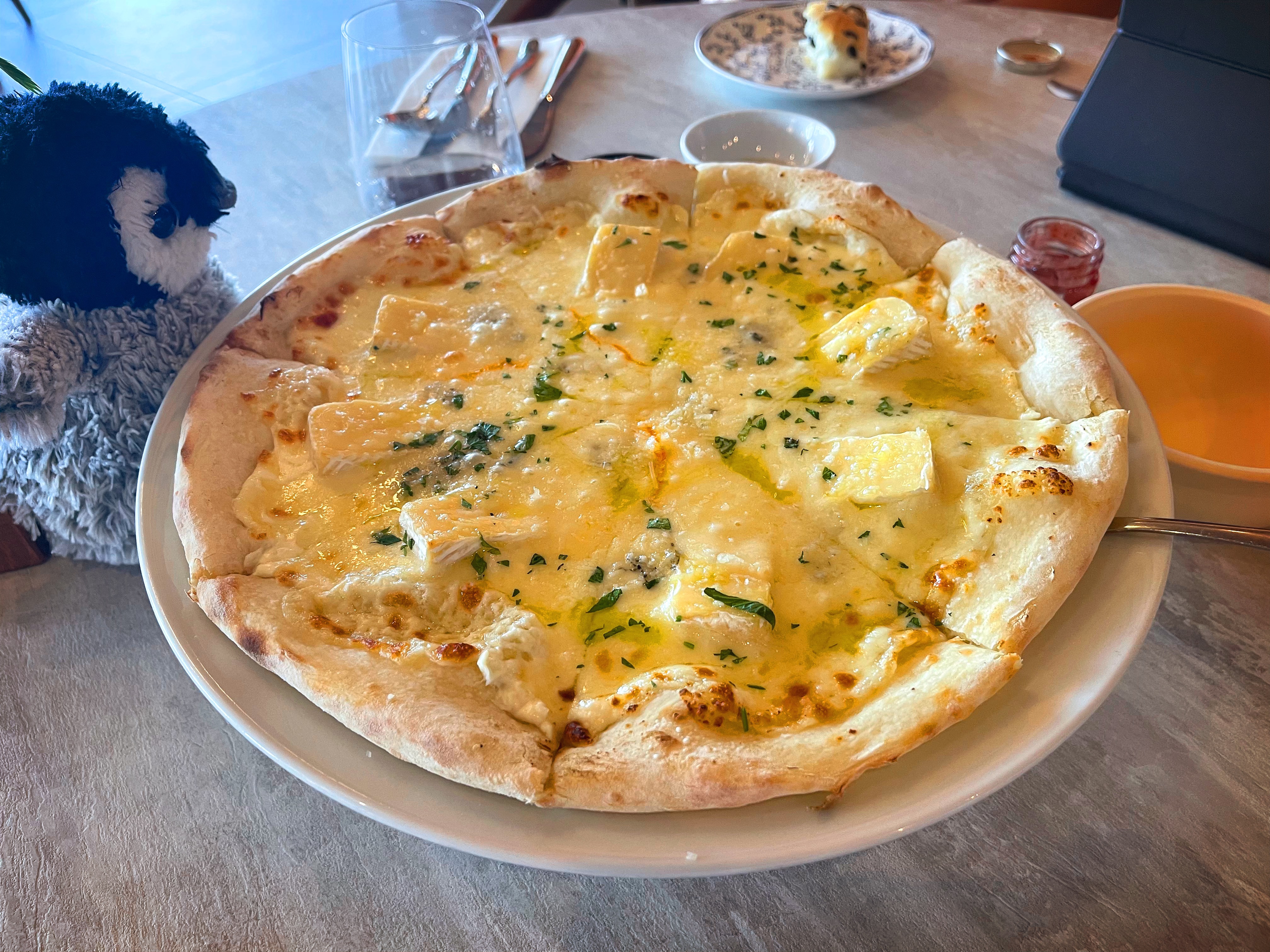 콰트로포르마지 피자 나왔습니다.