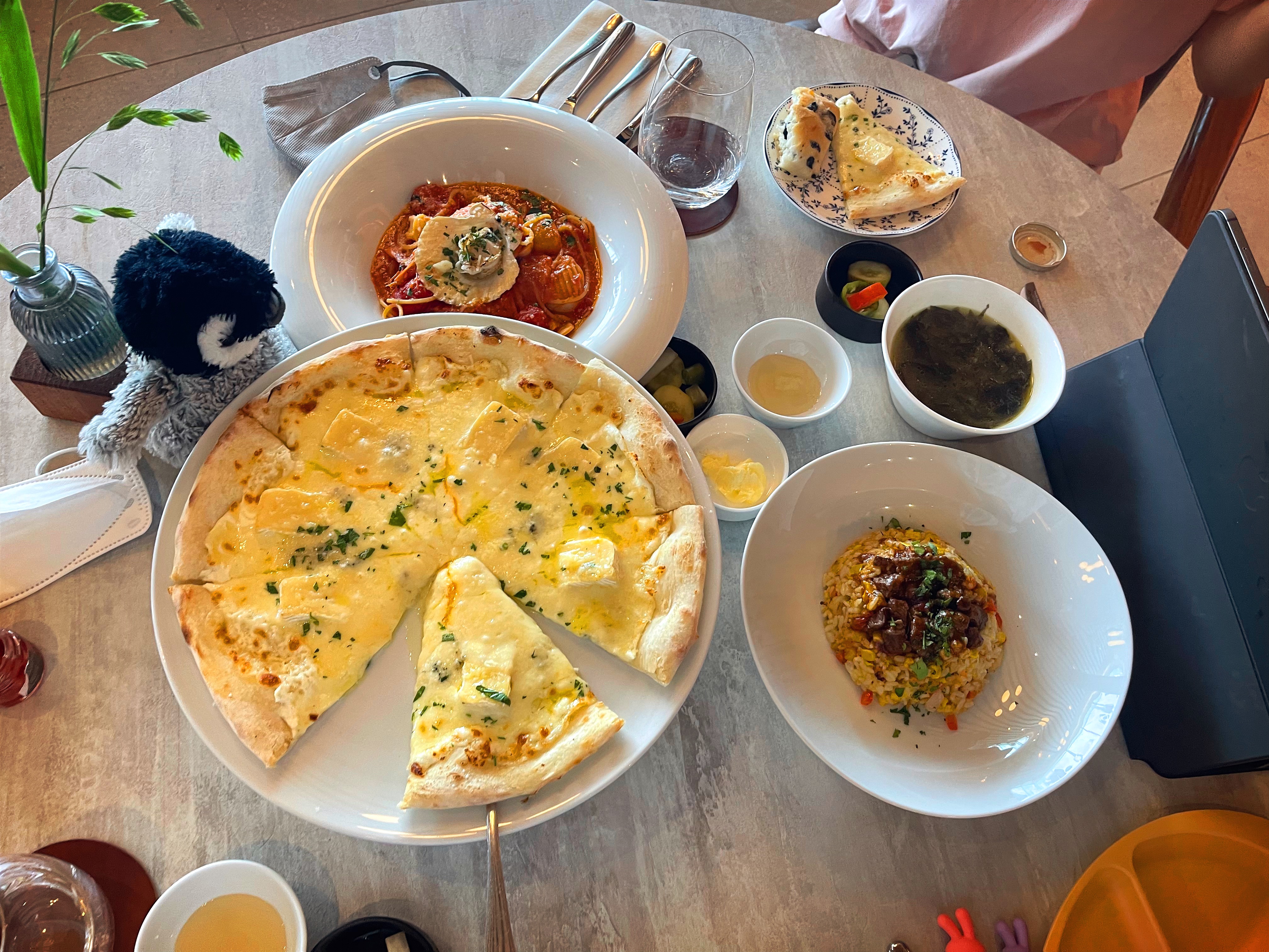 어린이 식사를 두개를 시키고 피자를 하나 시켰는데,