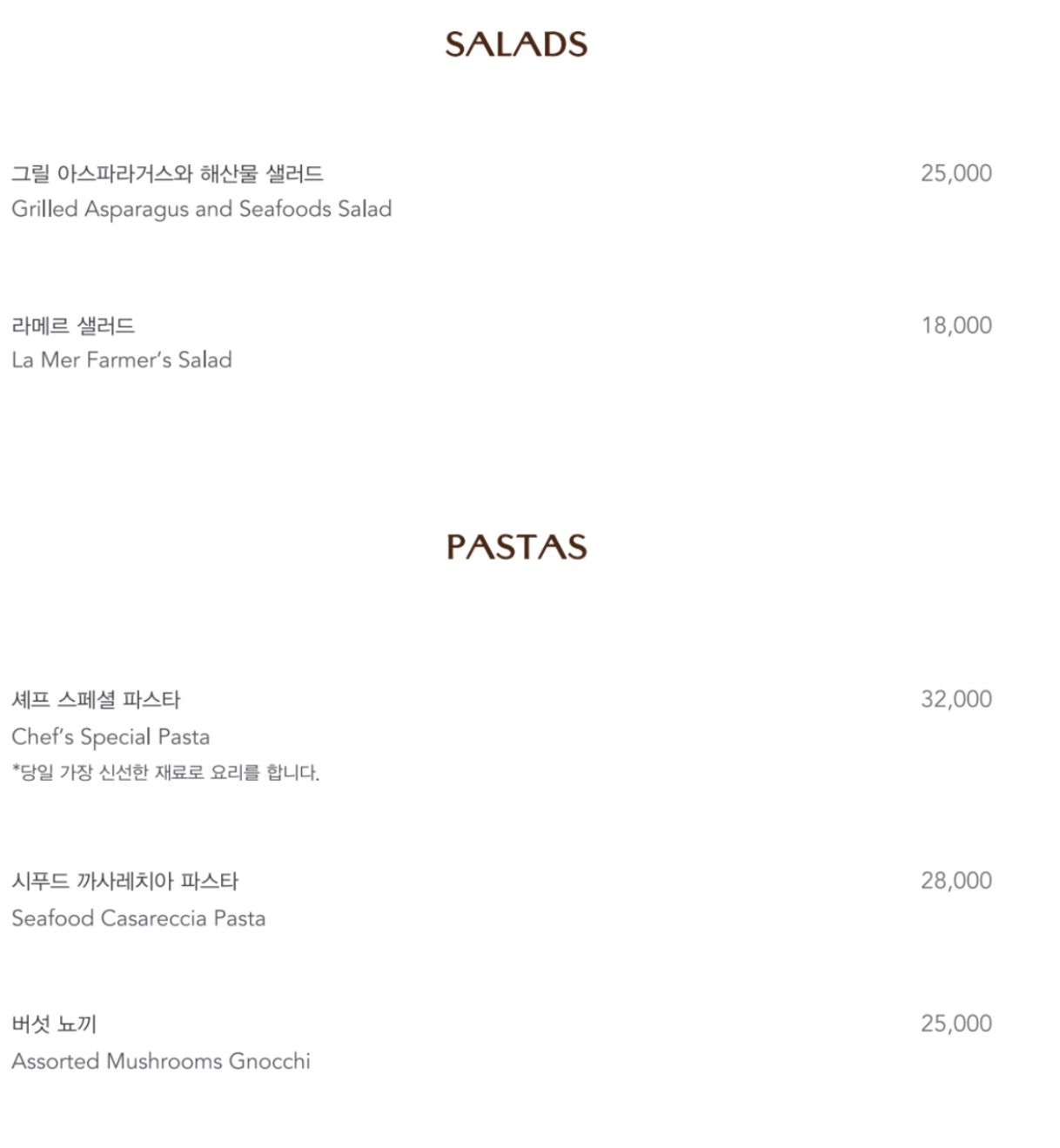 셰프 스페셜 파스타 32000원
