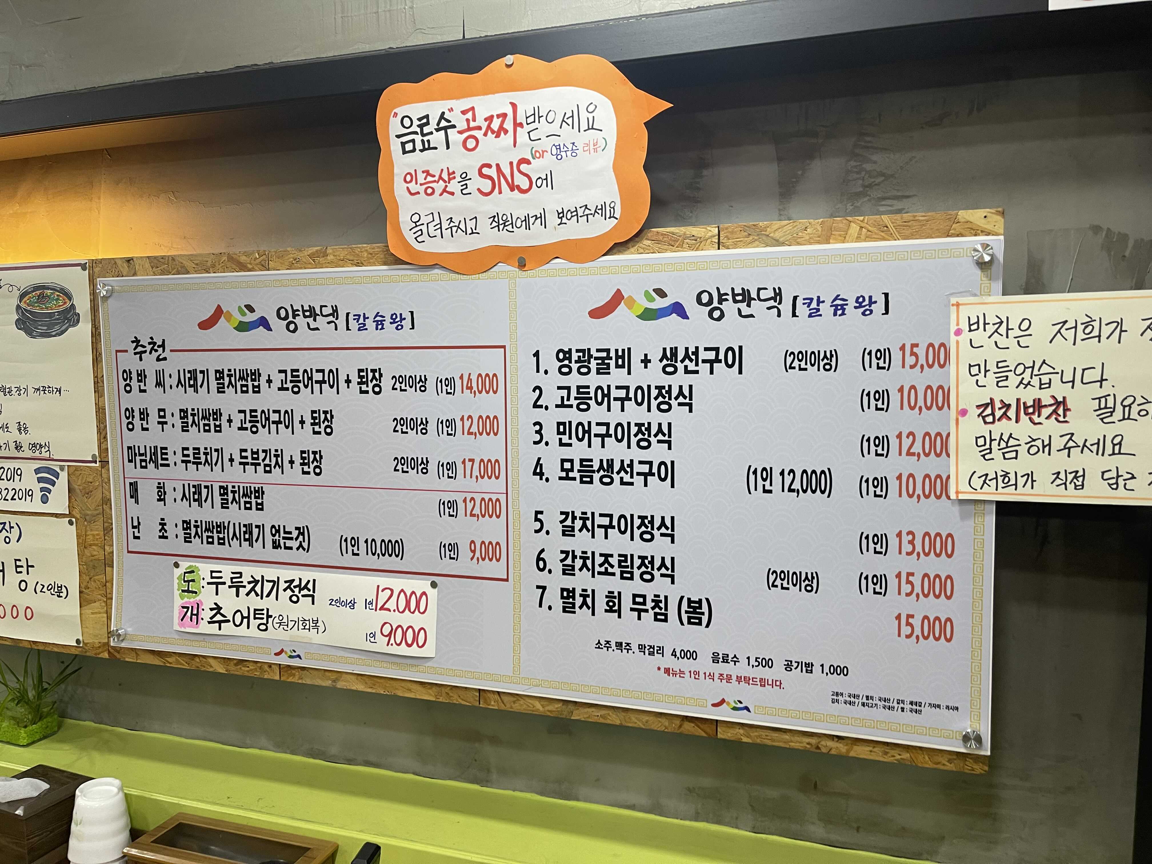 양반무: 멸치쌈밥 + 고등어구이 + 된장 12000원