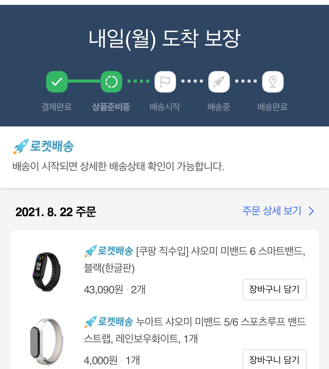 저 바로 샤오미 미밴드 6 쿠팡으로 주문했습니다.