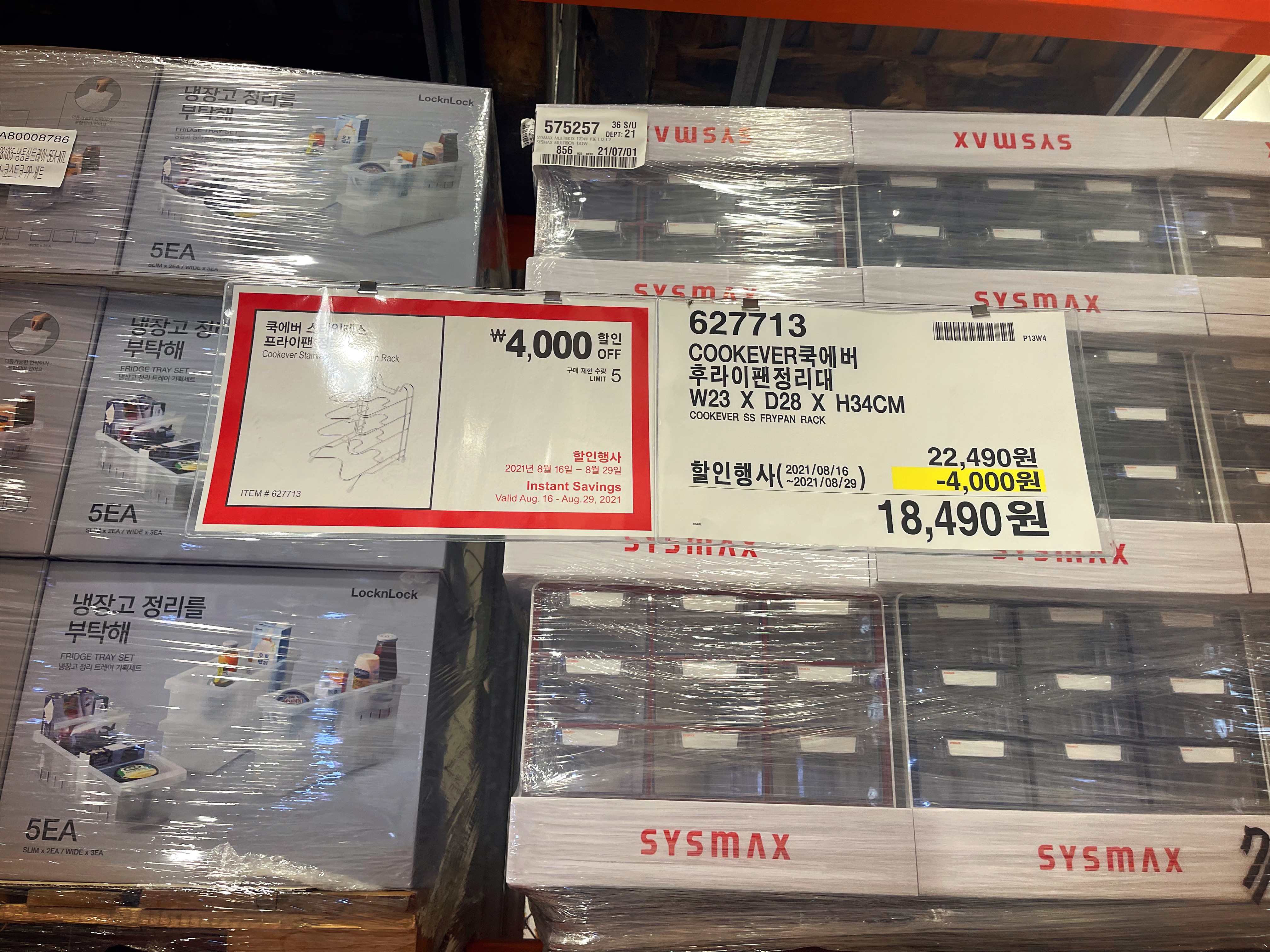 코스트코 8월할인상품 및 추천상품: 쿡에버후라이팬정리대, 필립스면도기 미니냉장고 롤링테이블 바론맥심 듀오락키즈유산균 상하목장우유 이네딧담 1865