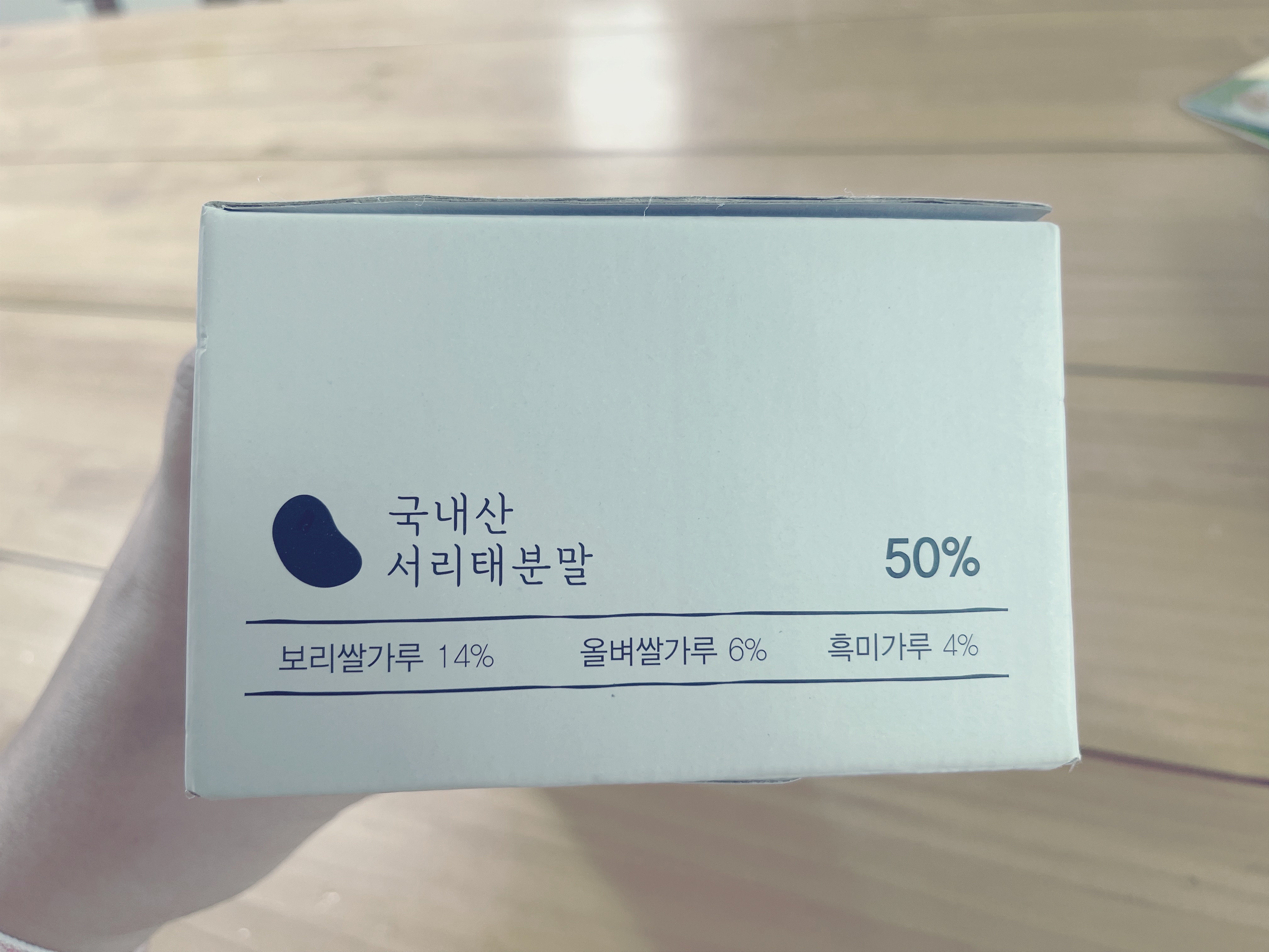 원재료및 함량: 서리태분말(국내산)50%, 보리쌀가루, 탈지분유(미국산), 코코넛 꽃액즙분말,