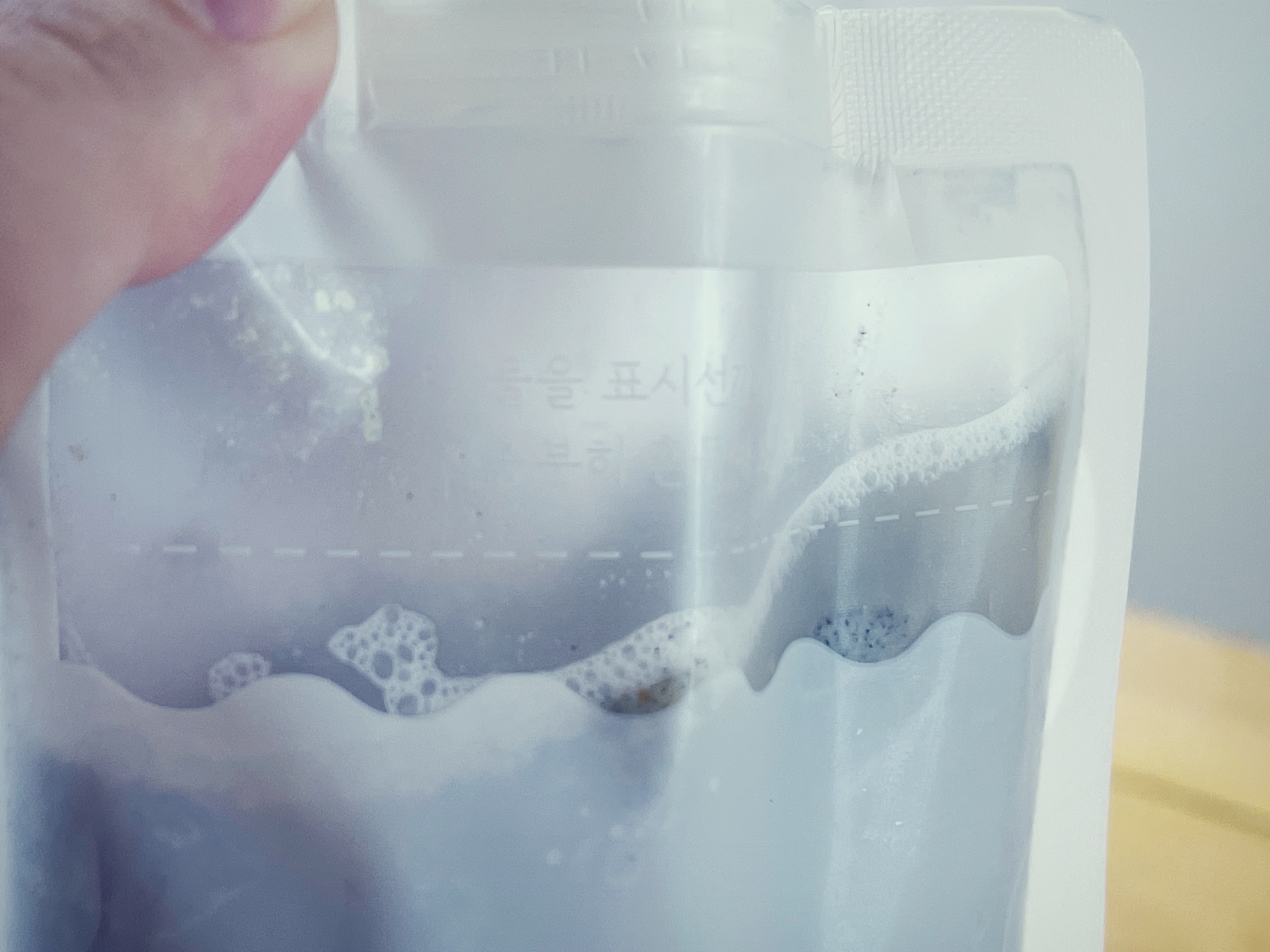 생수를 넣은후 보관 또는 휴대시 변질우려 및 흘러나올 수 있으므로 즉시 드시길 바랍니다.