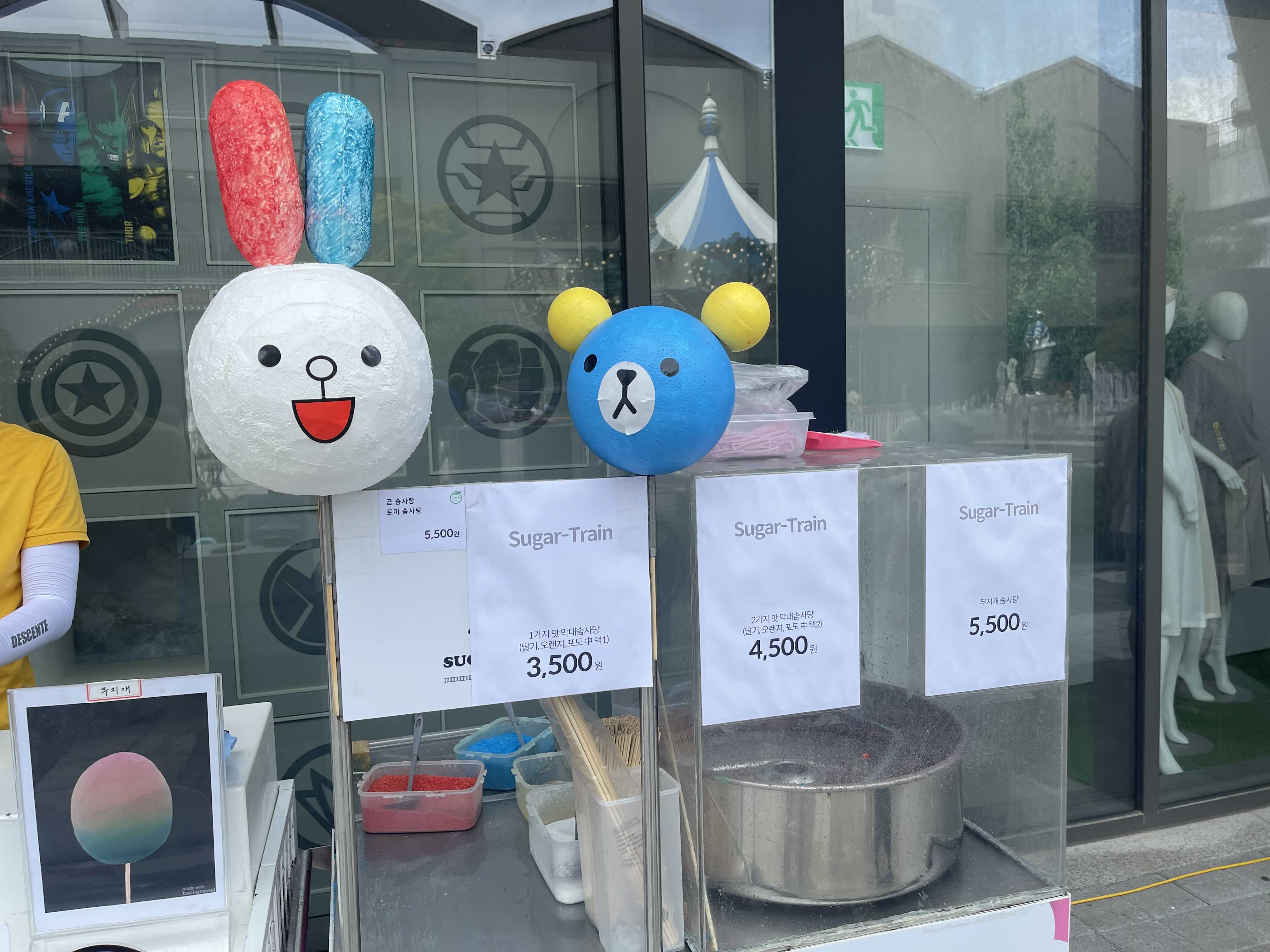 놀이기구앞에 슈가트레인 에서 사먹었어요