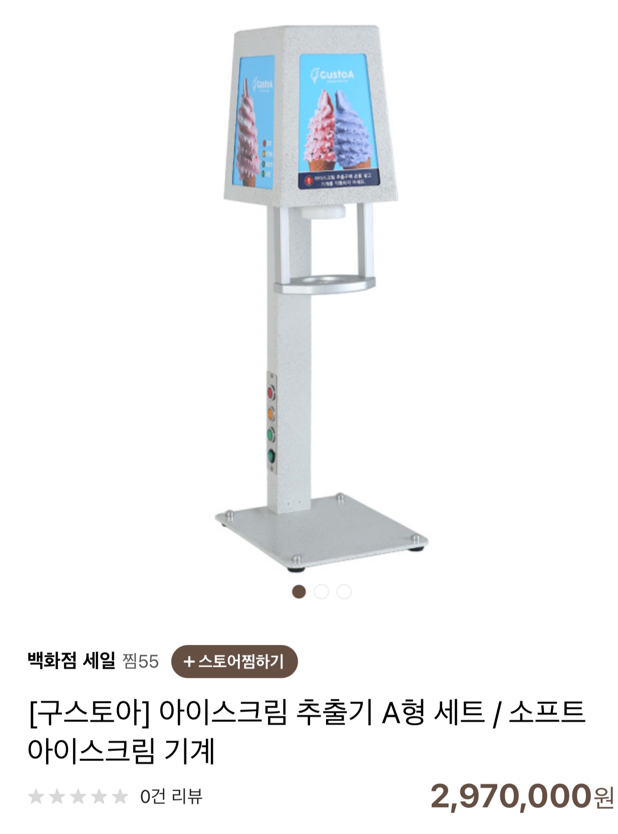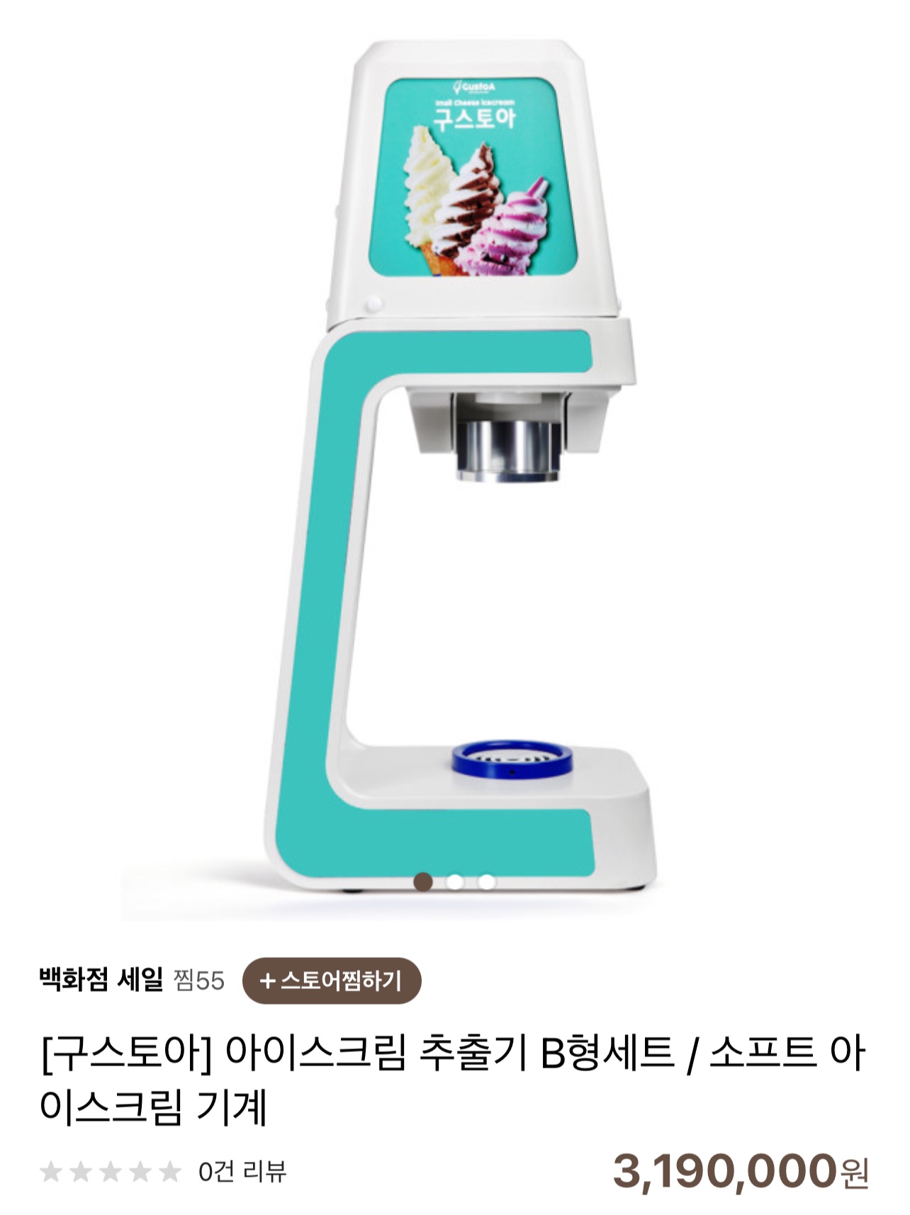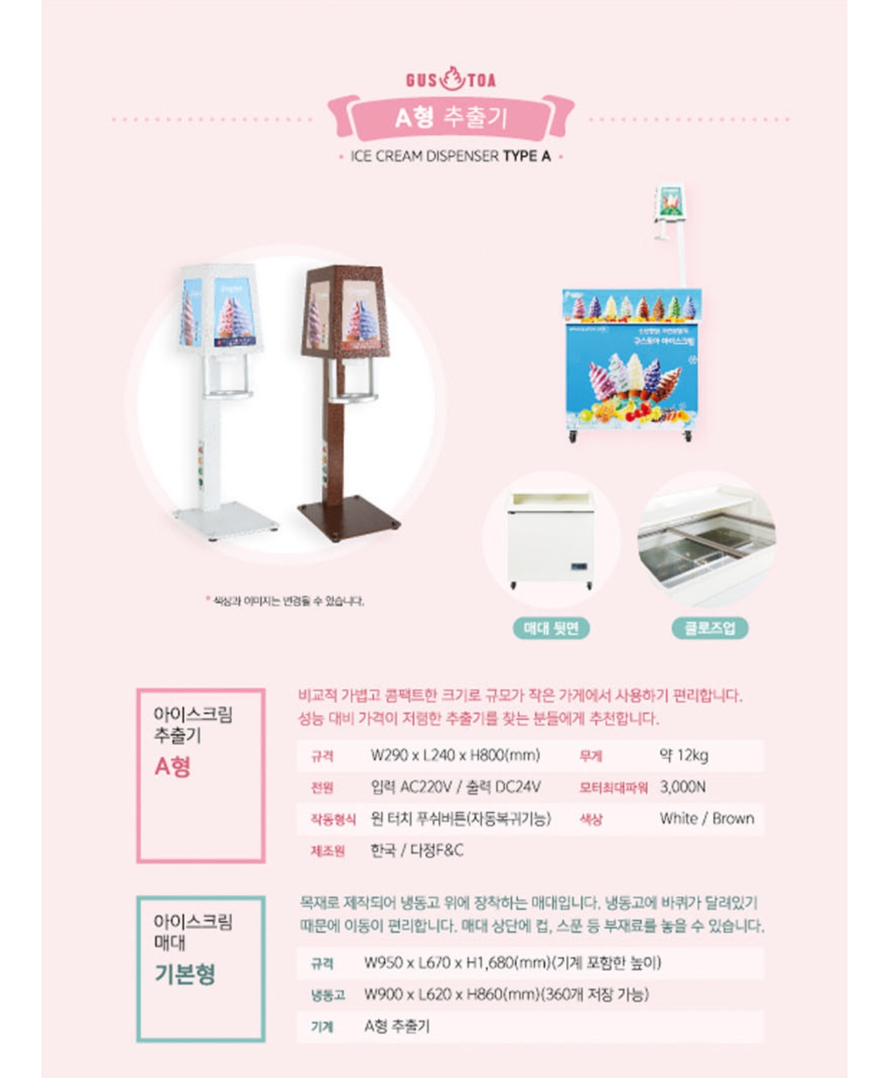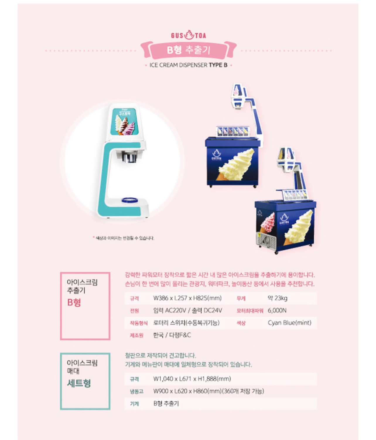 20만원 차이인데, 아이스크림 추출 머신의 모터차이가 있습니다.