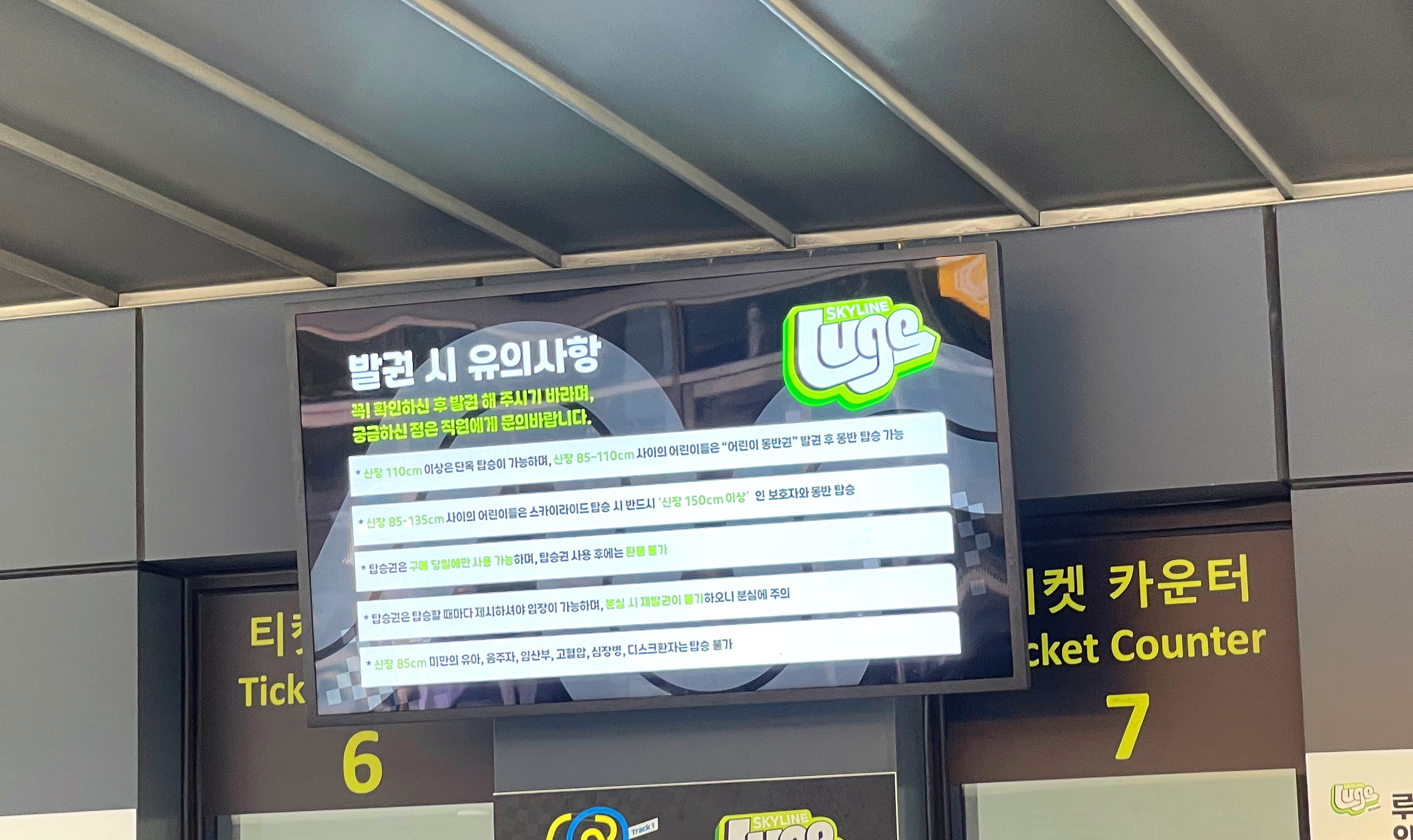 아이키가 85cm가 안된다면, 스카이라이드와 루지를 탑승할 수 없습니다.