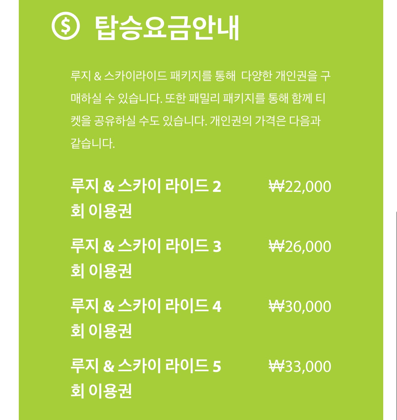 (스카이라이드, 리프트 탑승권 포함가격)