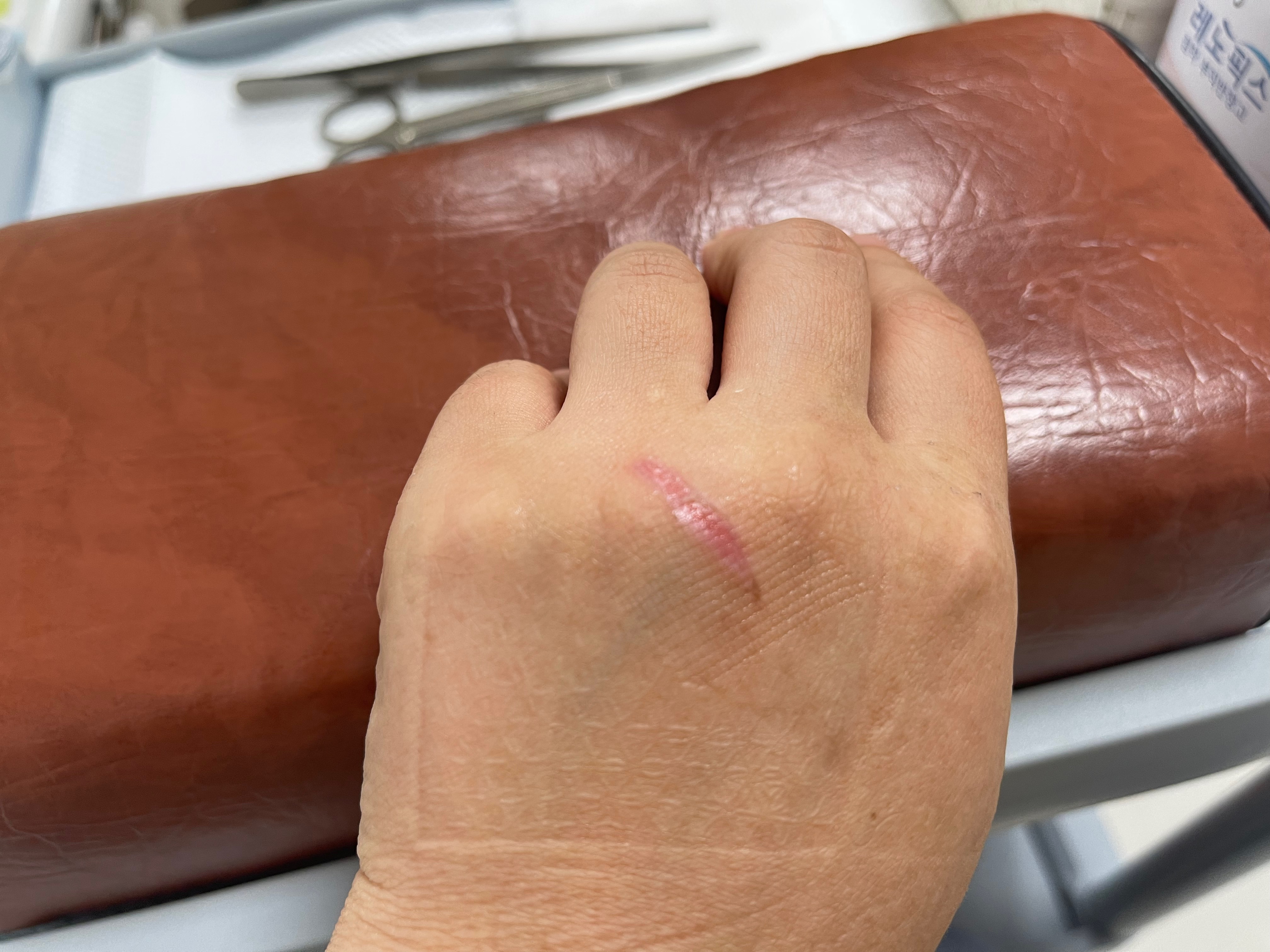 부산 금정구 : 화창한병원 오븐에 손등 데였을때, 2도화상 진료1