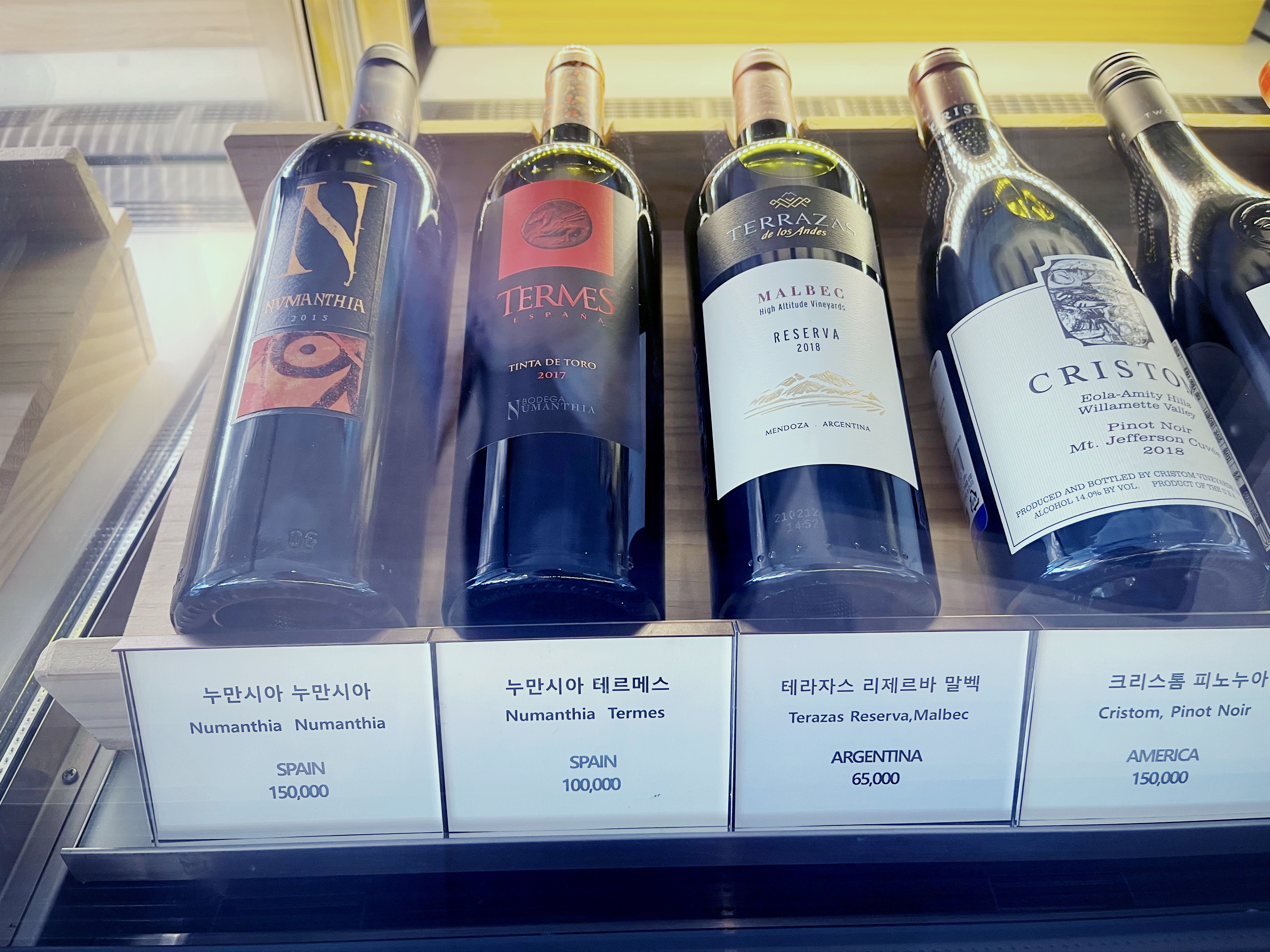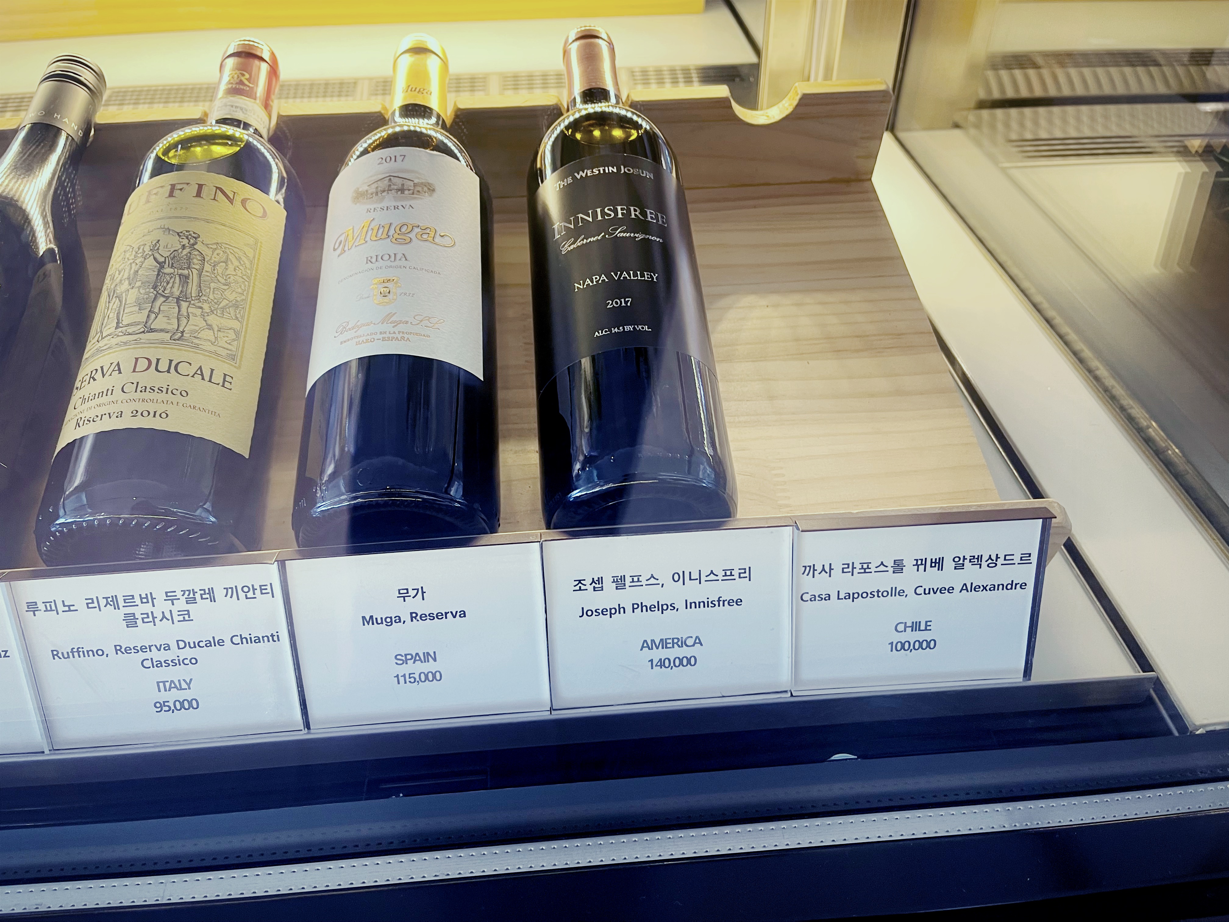웨스틴조선 호텔 레드와인 : 누만시아 테르메스 테라자스 크리스톰 투핸즈 엔젤스쉐어 무가리제르바, 루피노 리제르바 조셉펠프스 라포스톨