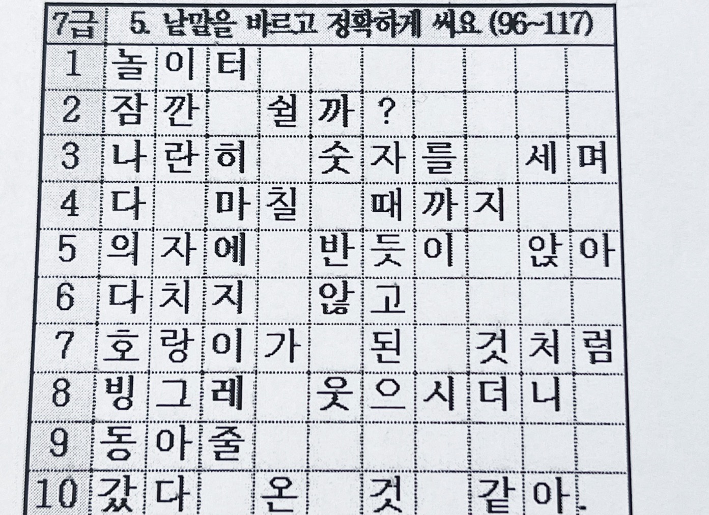 7급 5. 낱말을 바르고 정확하게 써요. (96~117)